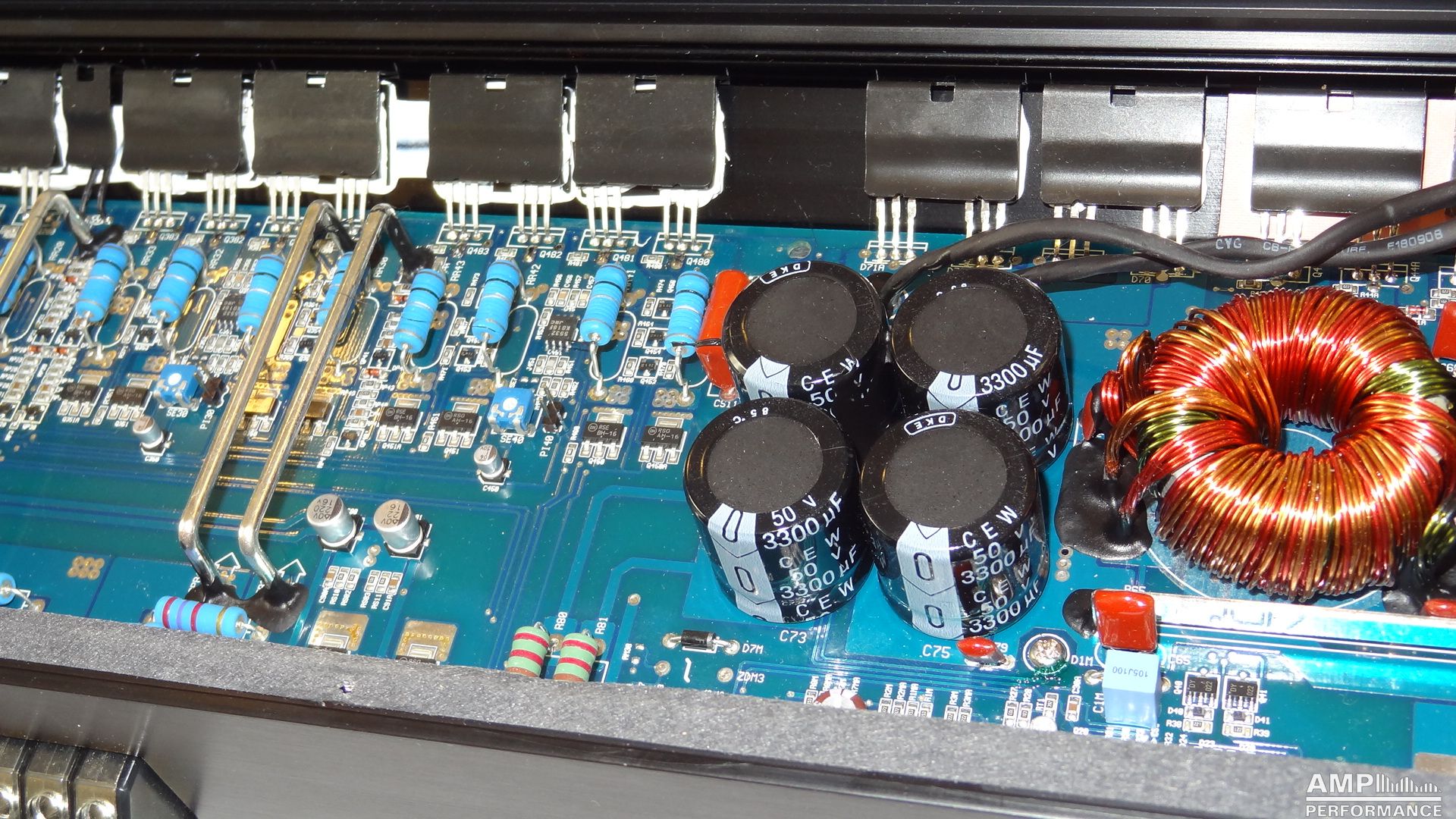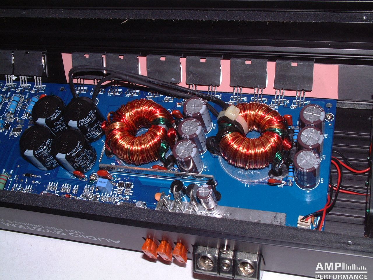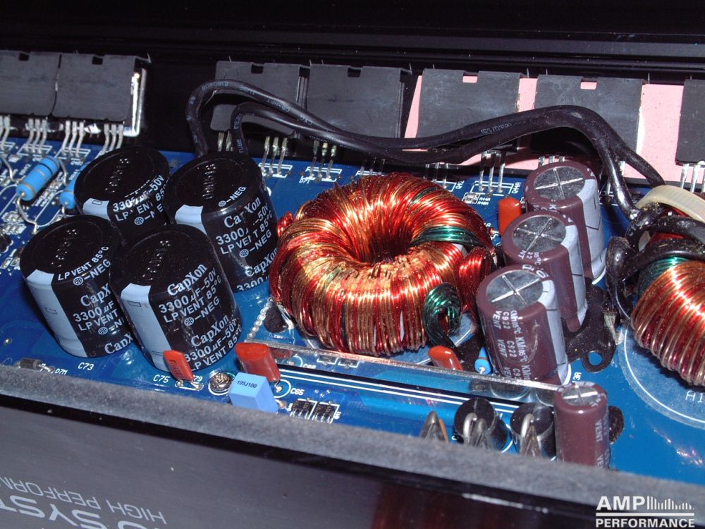 2 × 458 Watt Kanal 1 + 2 sowie 3 + 4 gebrückt an 4 Ohm bei 13,3V Versorgungsspannung
