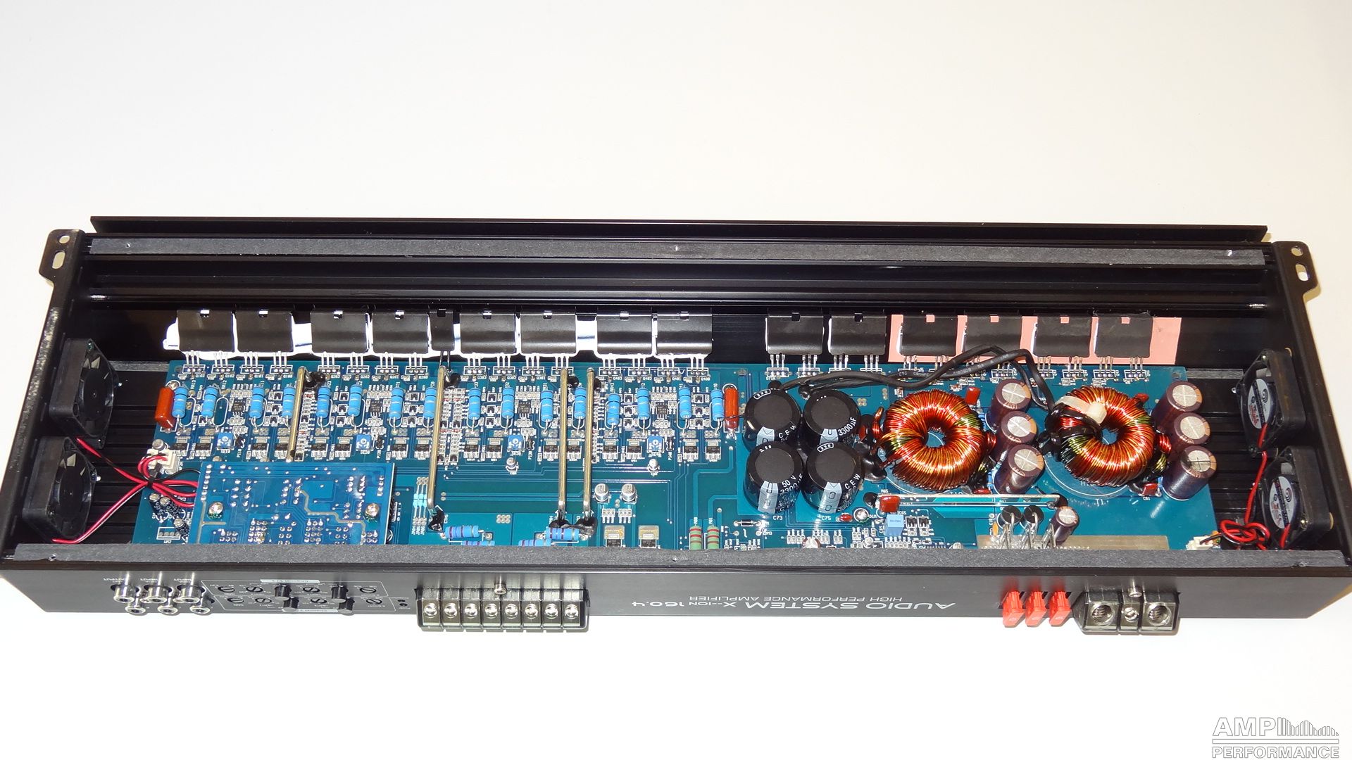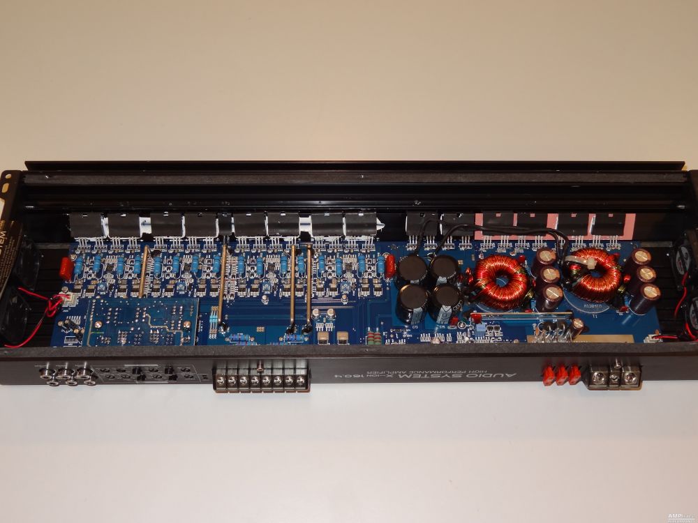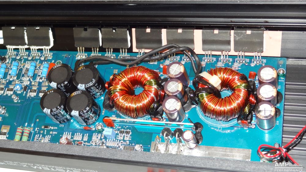 2 × 454 Watt Kanal 1 + 2 sowie 3 + 4 gebrückt an 4 Ohm bei 13,3V Versorgungsspannung
