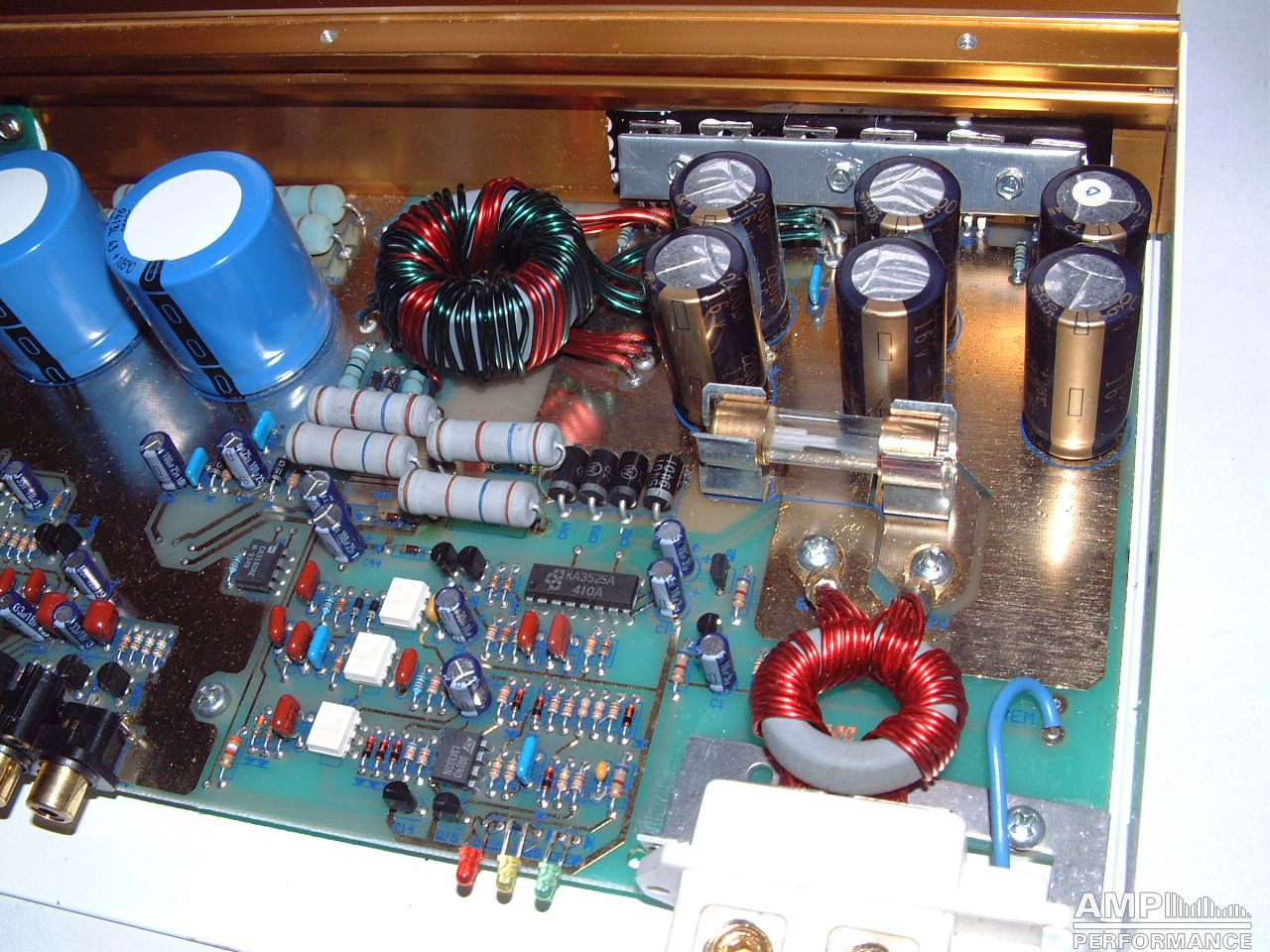 1 × 484 Watt Kanal 1 + 2 gebrückt an 4 Ohm bei 13,4V Versorgungsspannung