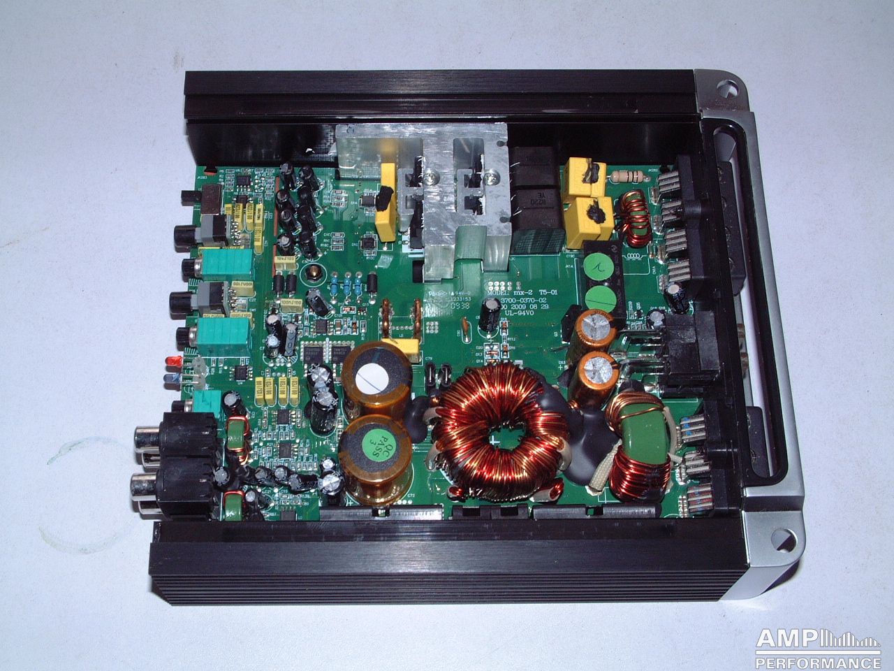 1 × 420 Watt Kanal 1 + 2 gebrückt an 4 Ohm bei 13,3V Versorgungsspannung