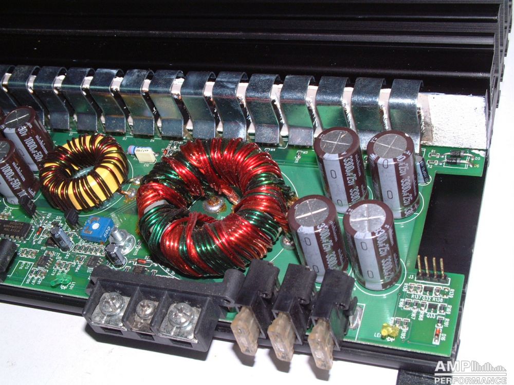 3 × 199 Watt Kanal 1 bis 6 gebrückt an 4 Ohm bei 13,4V