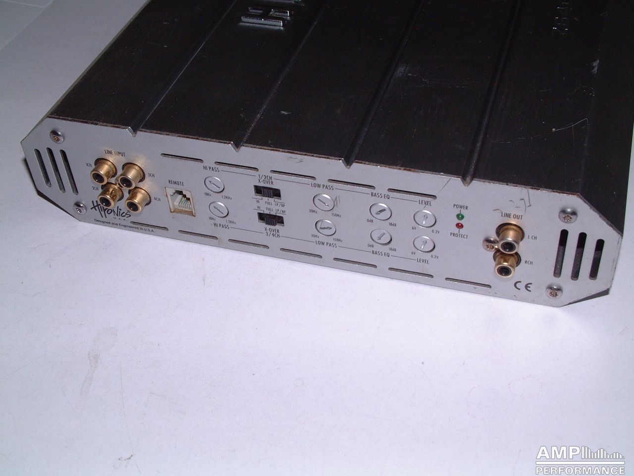2 × 210 Watt Kanal 1 + 2 sowie 3 + 4 gebrückt an 4 Ohm bei 13,4V Versorgungsspannung