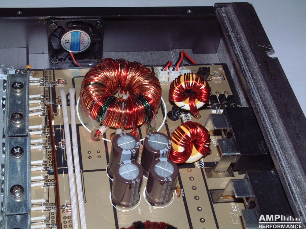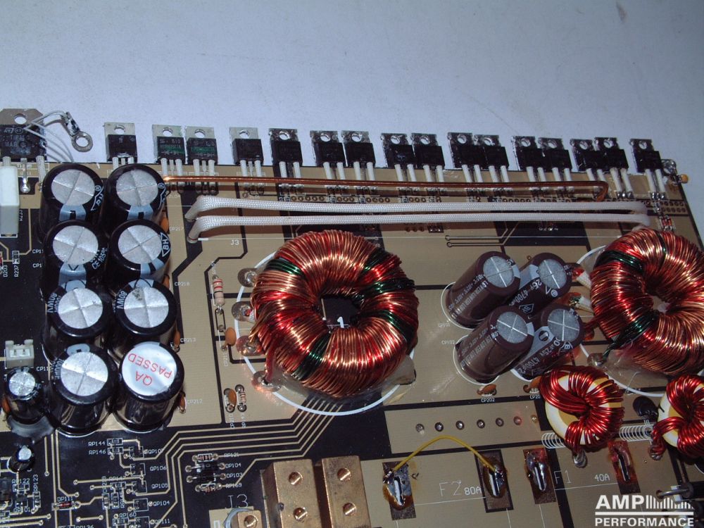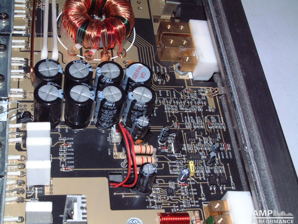 2 × 298 Watt Kanal 1 + 2 an 4 Ohm bei 13,4V Versorgungsspannung