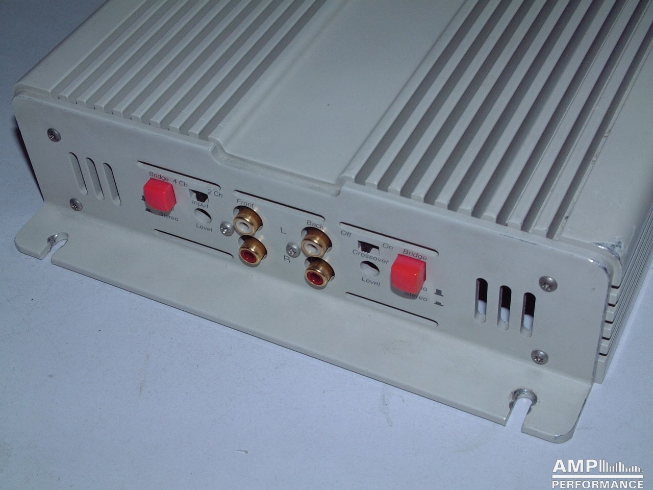 2 × 112 Watt Kanal 1 + 2 sowie 3 + 4 gebrückt an 4 Ohm bei 13,4V Versorgungsspannung