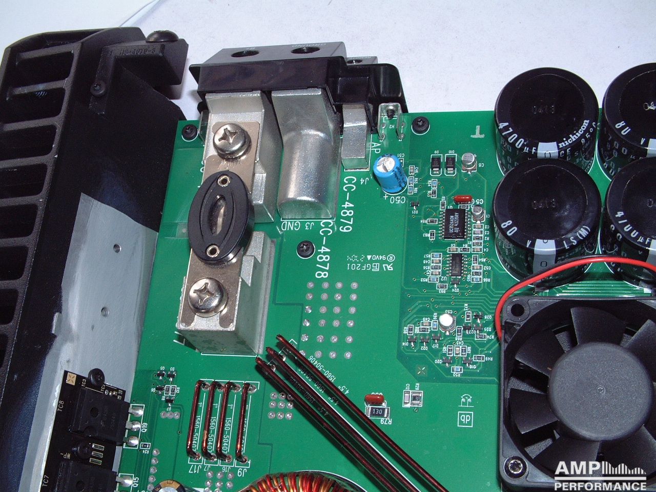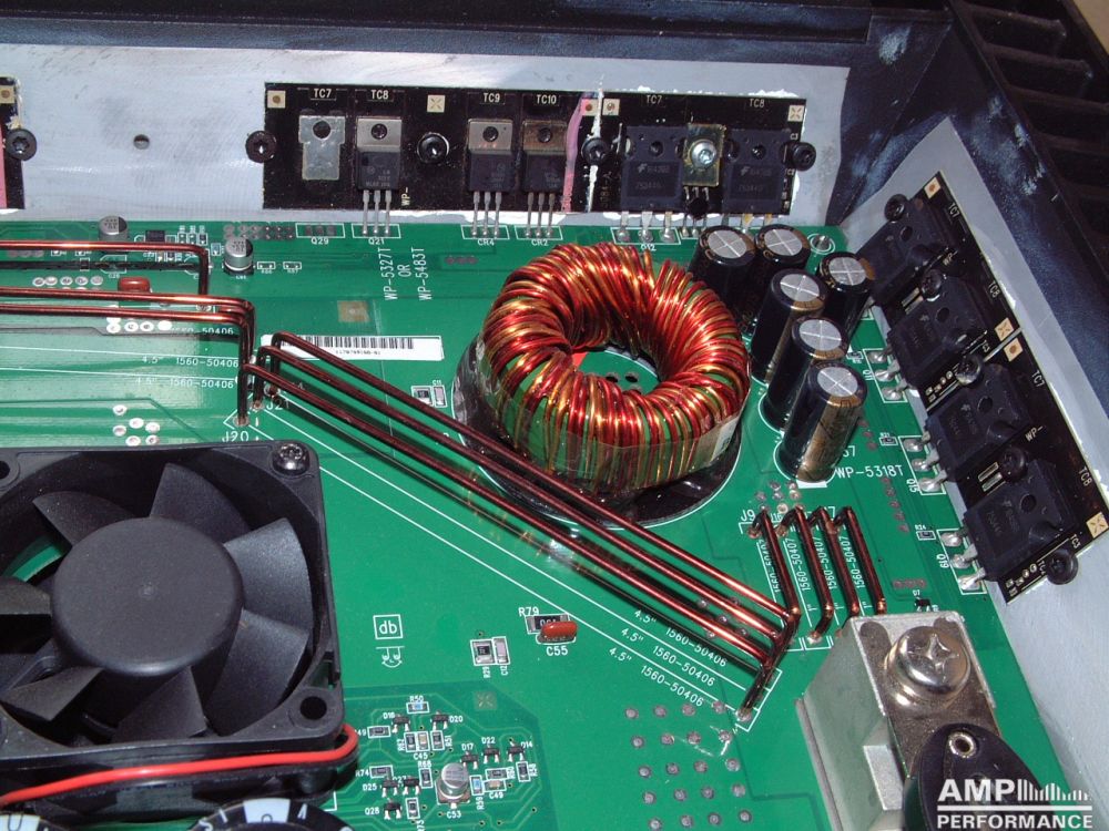 2 × 870 Watt Kanal 1 + 2 sowie 3 + 4 gebrückt an 4 Ohm bei 13,3V Versorgungsspannung