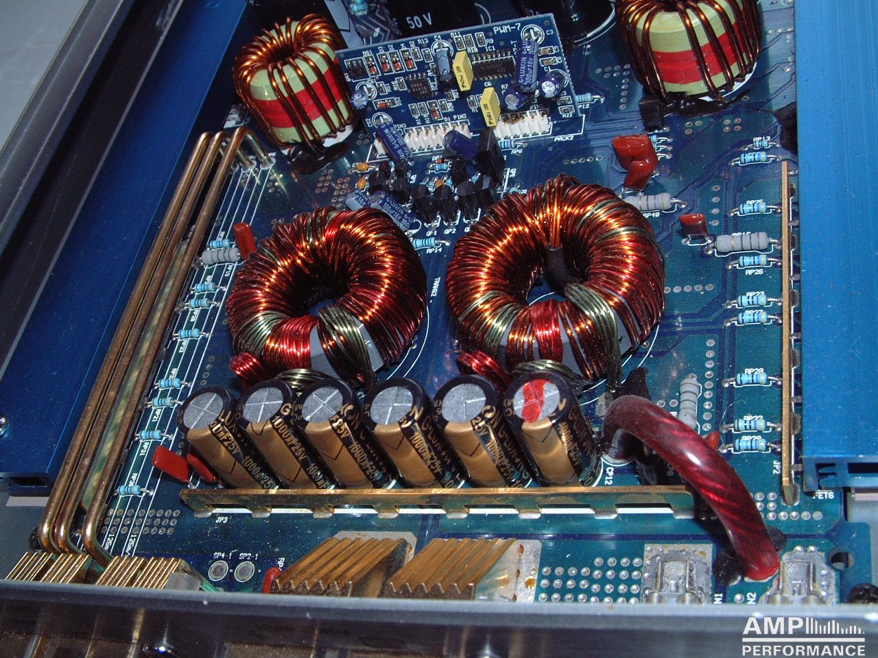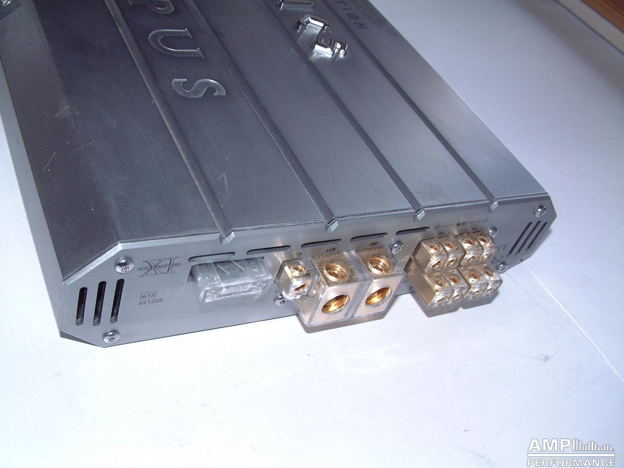 2 × 396 Watt Kanal 1 + 2 sowie 3 + 4 gebrückt an 4 Ohm bei 13,4V Versorgungsspannung