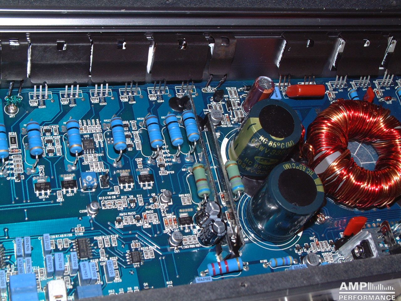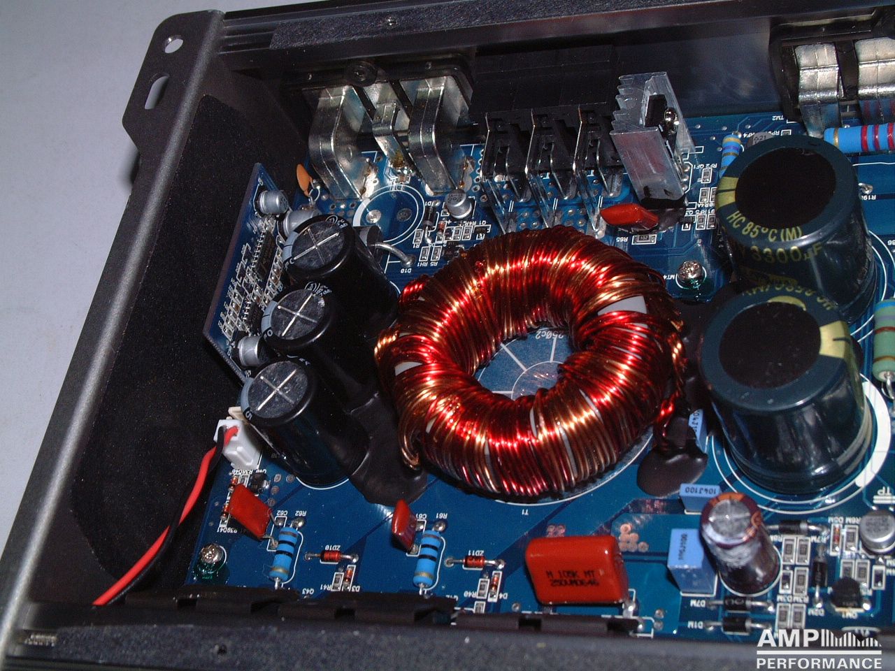1 × 676 Watt Kanal 1 + 2 gebrückt an 4 Ohm bei 13,4V Versorgungsspannung