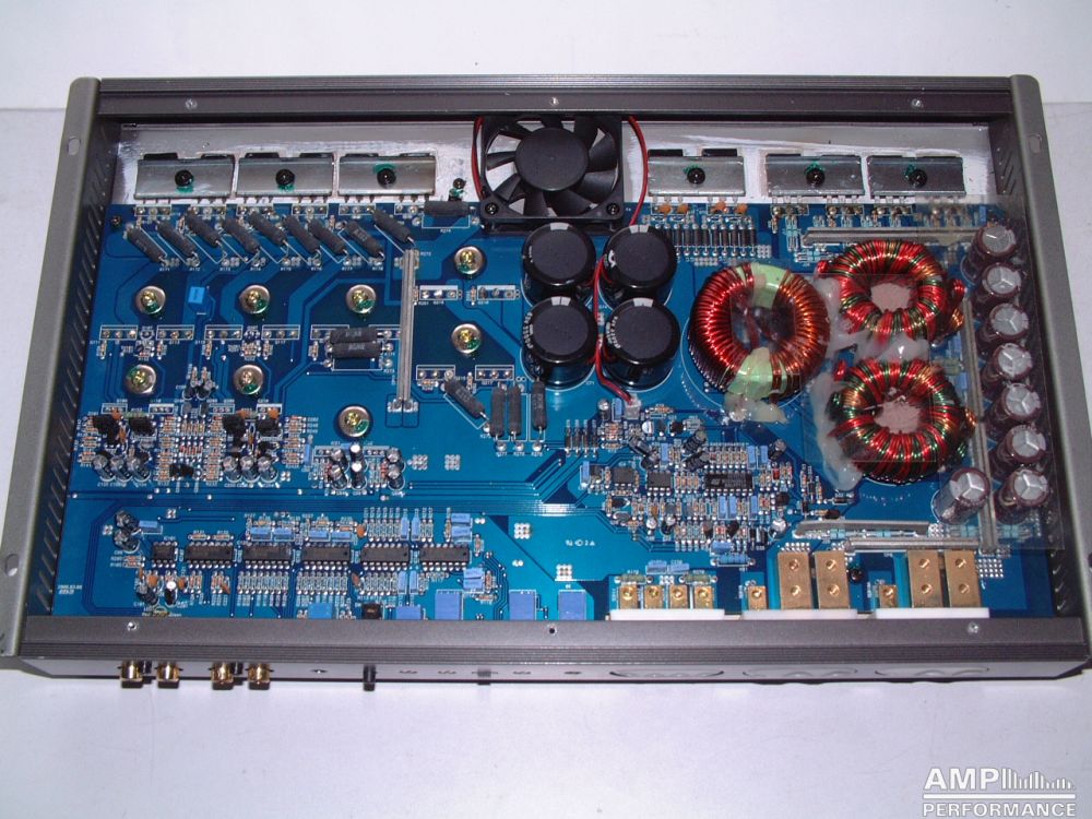 1 × 829 Watt Kanal 1 + 2 gebrückt an 4 Ohm bei 13,3V Versorgungsspannung