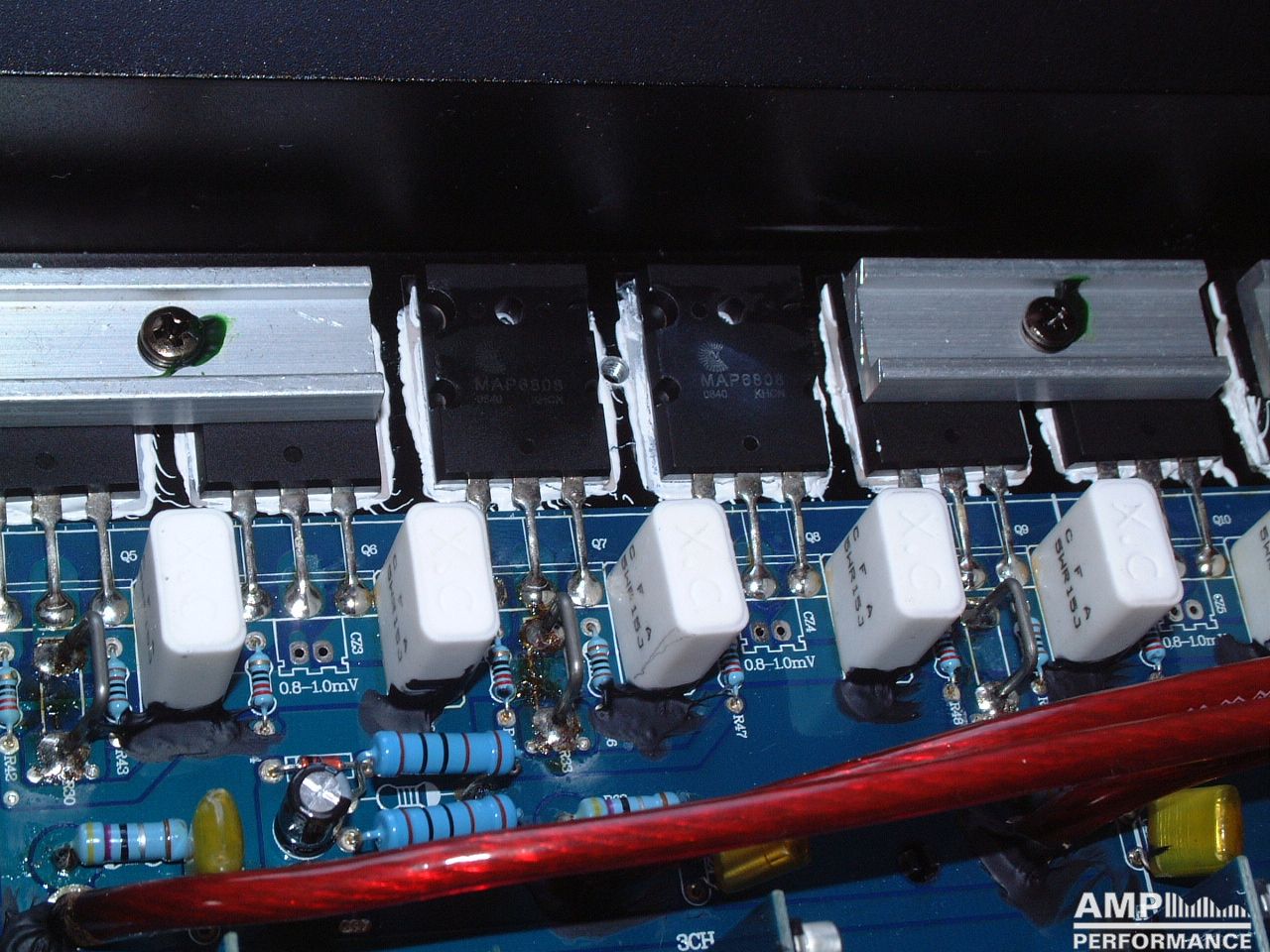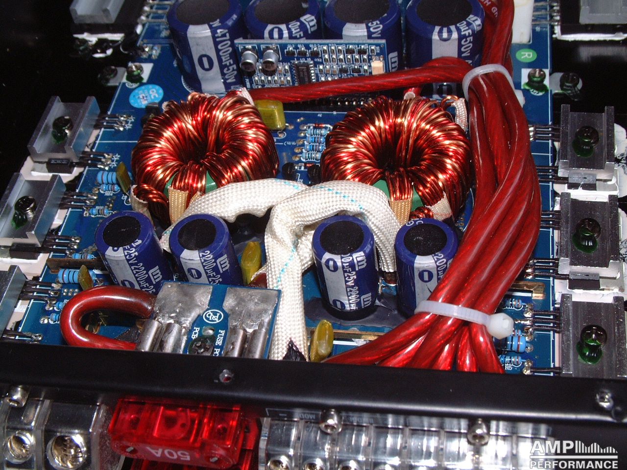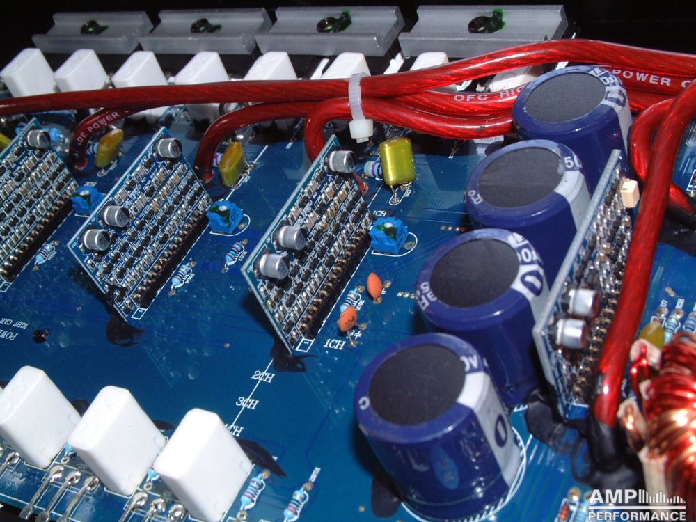 2 × 475 Watt Kanal 1 + 2 sowie 3 + 4 gebrückt an 4 Ohm bei 13,4V Versorgungsspannung