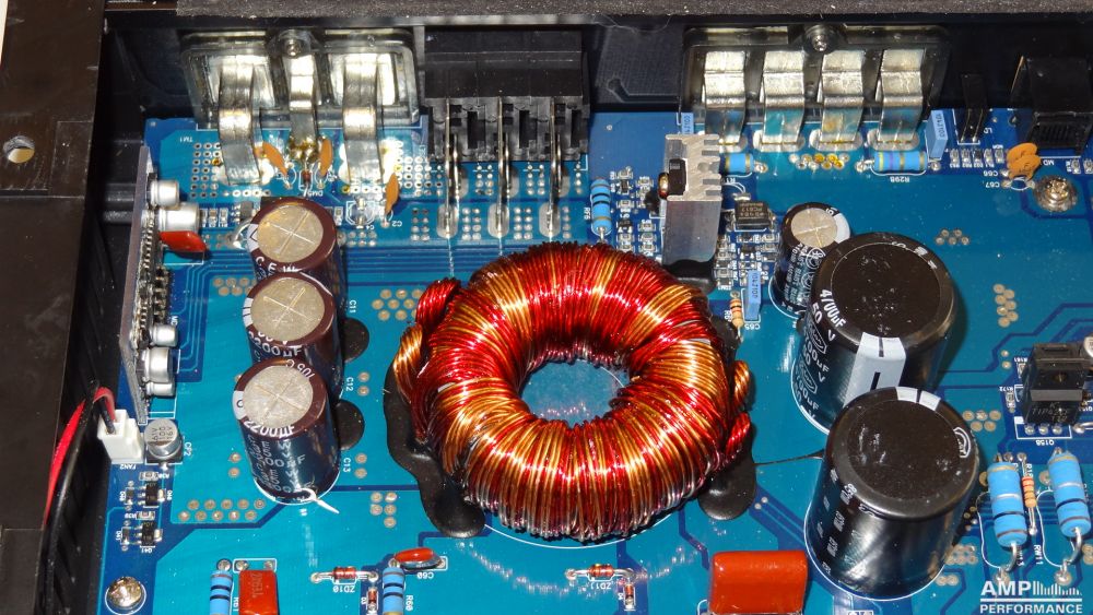 1 × 576 Watt Kanal 1 + 2 gebrückt an 4 Ohm bei 13,4V Versorgungsspannung