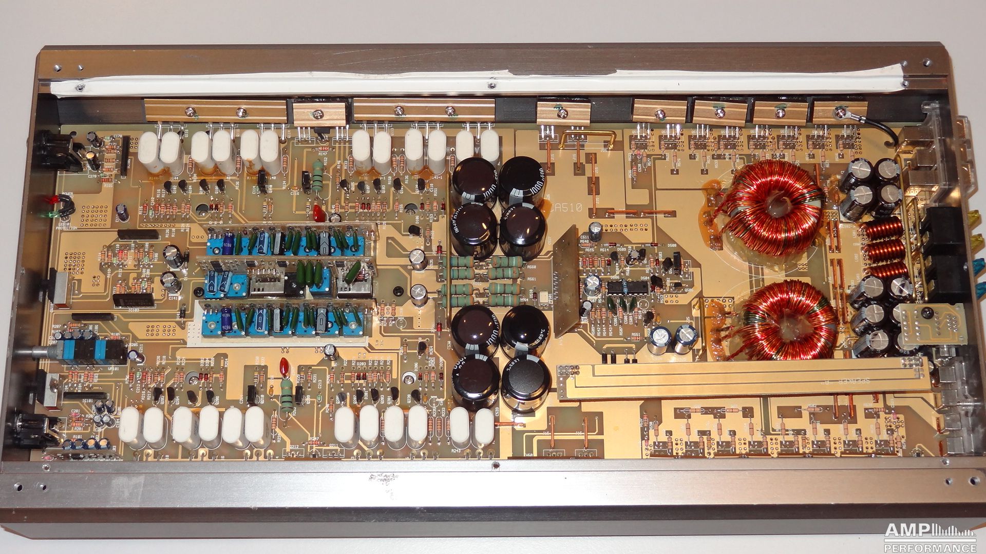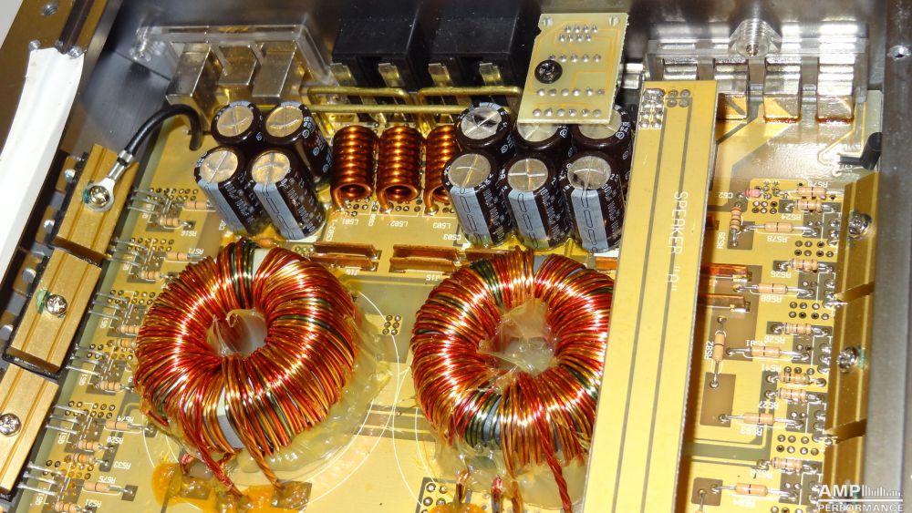 1 × 576 Watt Kanal 1 + 2 gebrückt an 4 Ohm bei 13,4V Versorgungsspannung
