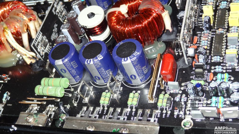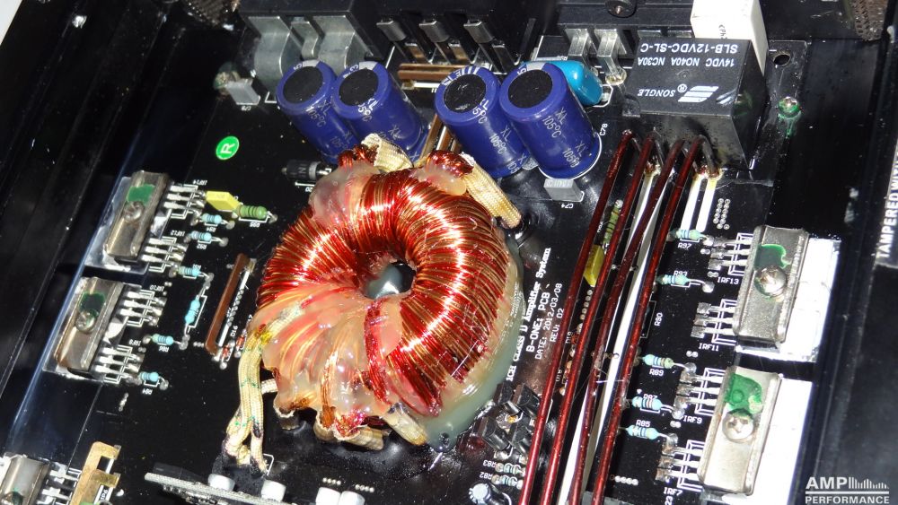 1 × 900 Watt Kanal 1 an 1 Ohm bei 13,3V Versorgungsspannung