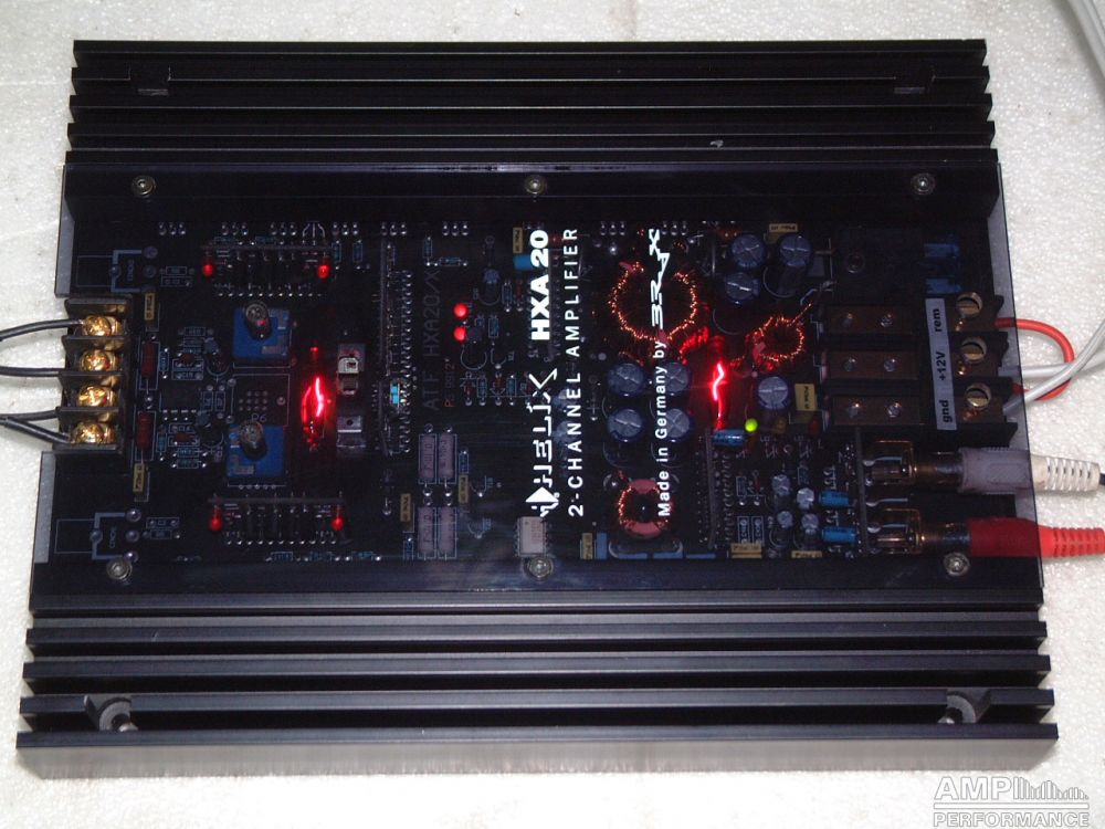 1 × 199 Watt Kanal 1 + 2 gebrückt an 4 Ohm bei 13,4V Versorgungsspannung