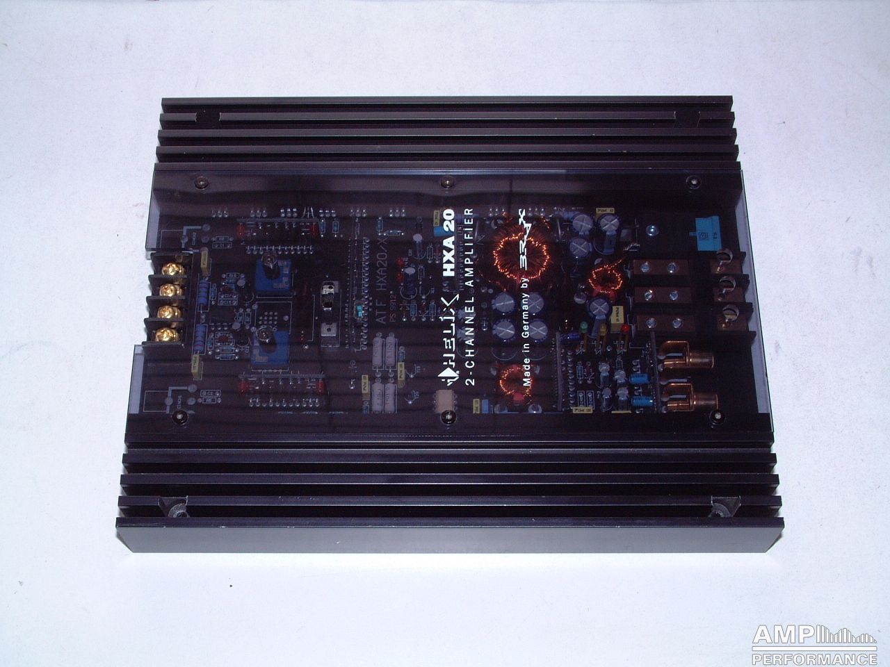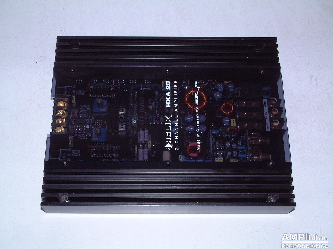 1 × 202 Watt Kanal 1 + 2 gebrückt an 4 Ohm bei 13,4V Versorgungsspannung