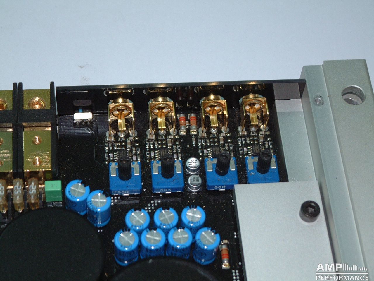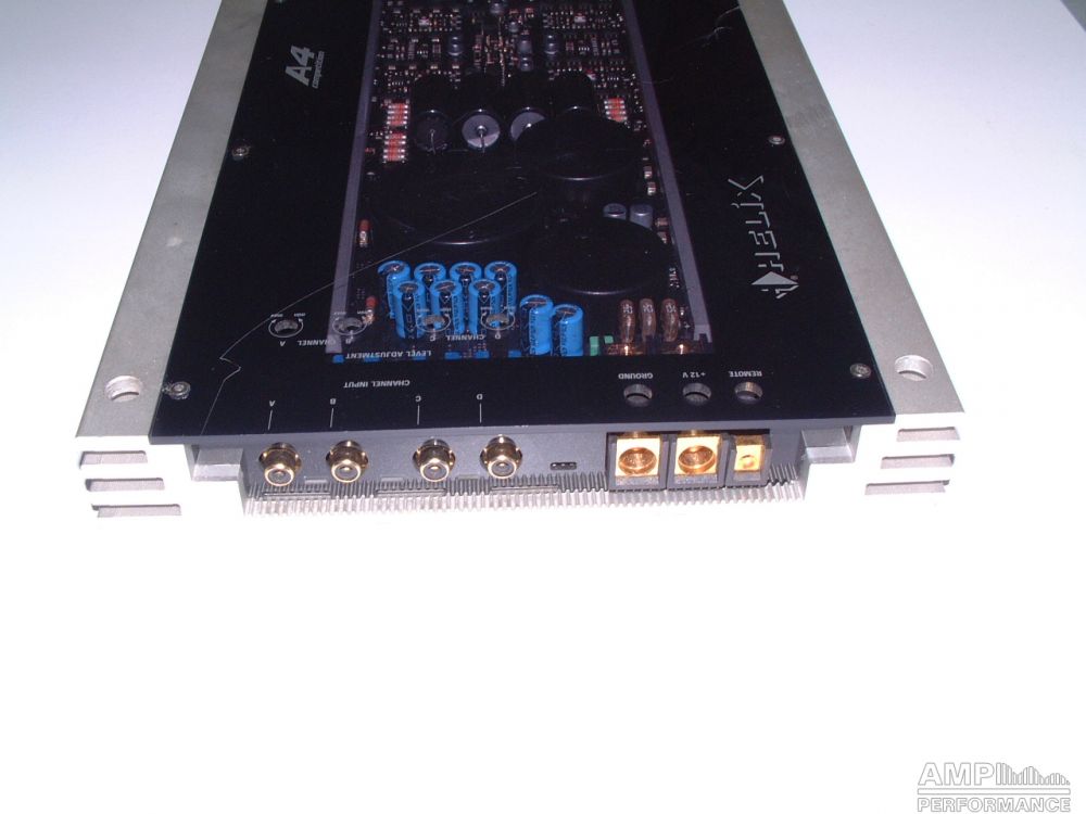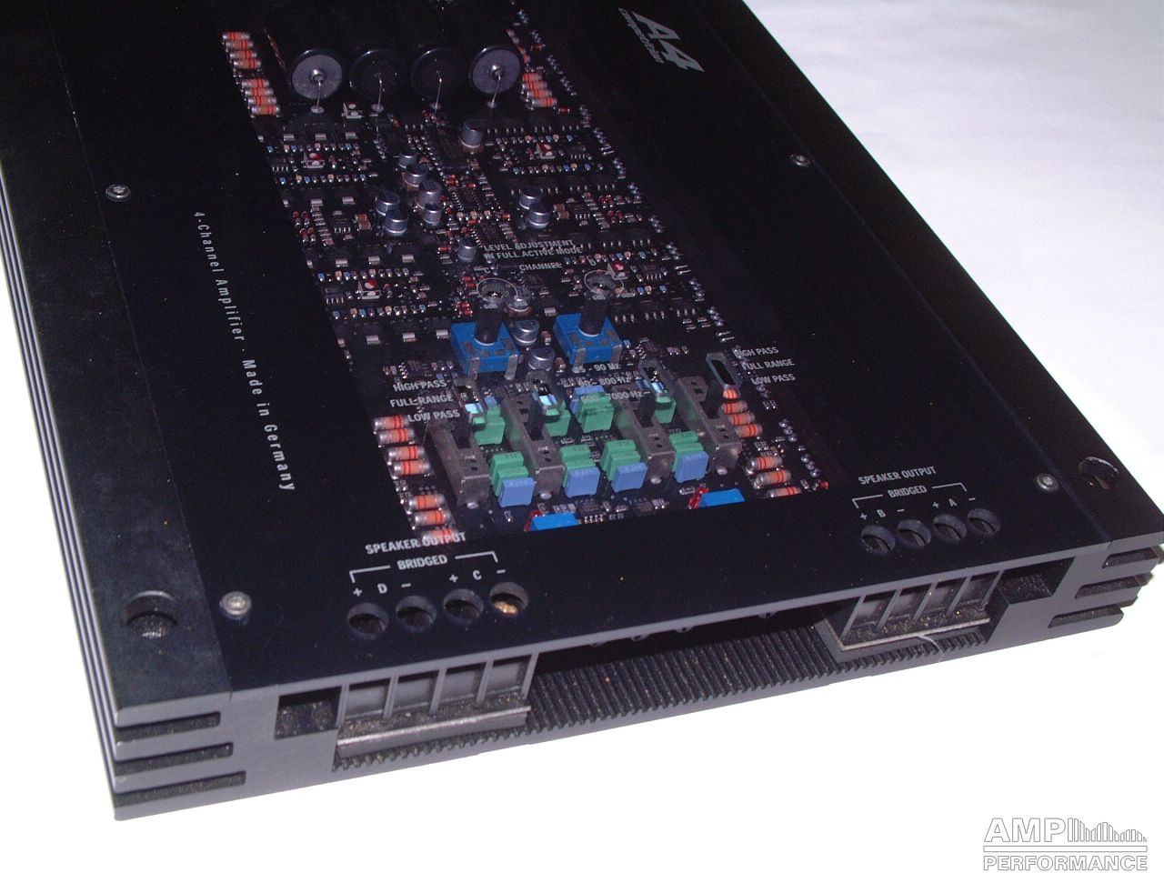 2 × 317 Watt Kanal 1 + 2 sowie 3 + 4 gebrückt an 4 Ohm bei 13,4V Versorgungsspannung