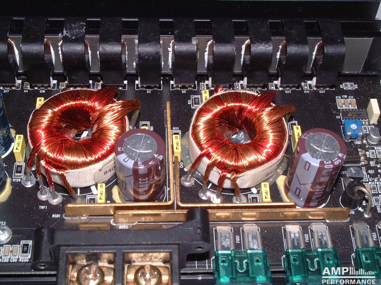 1 × 1095 Watt Kanal 1 + 2 gebrückt an 2 Ohm bei 13,3V Versorgungsspannung