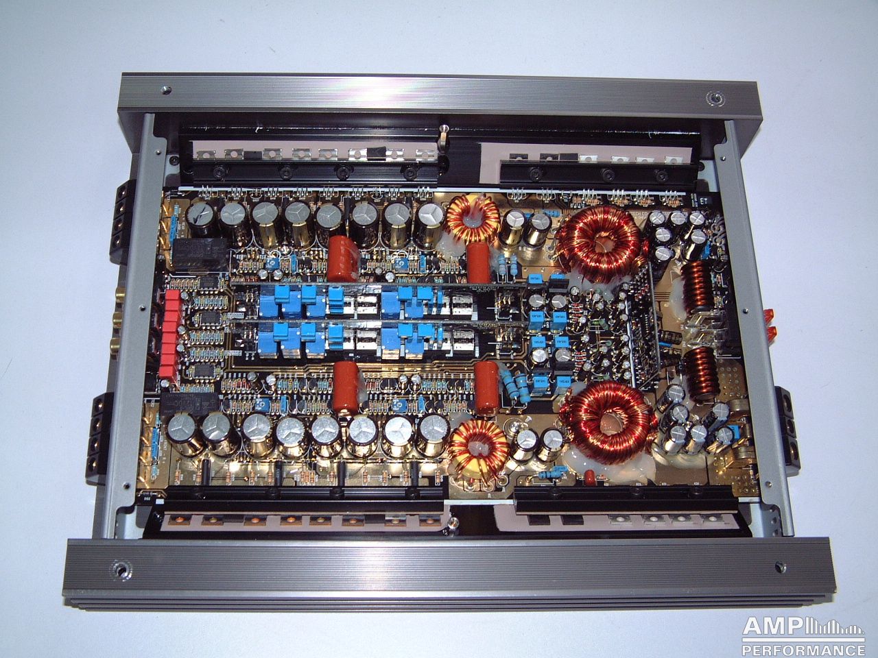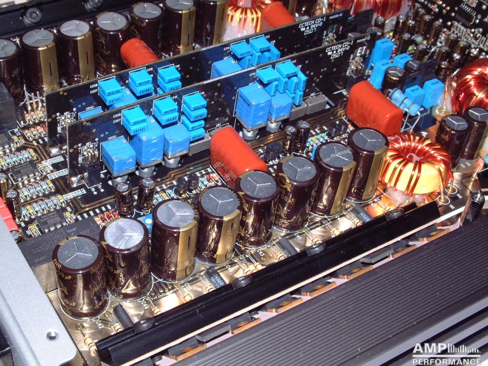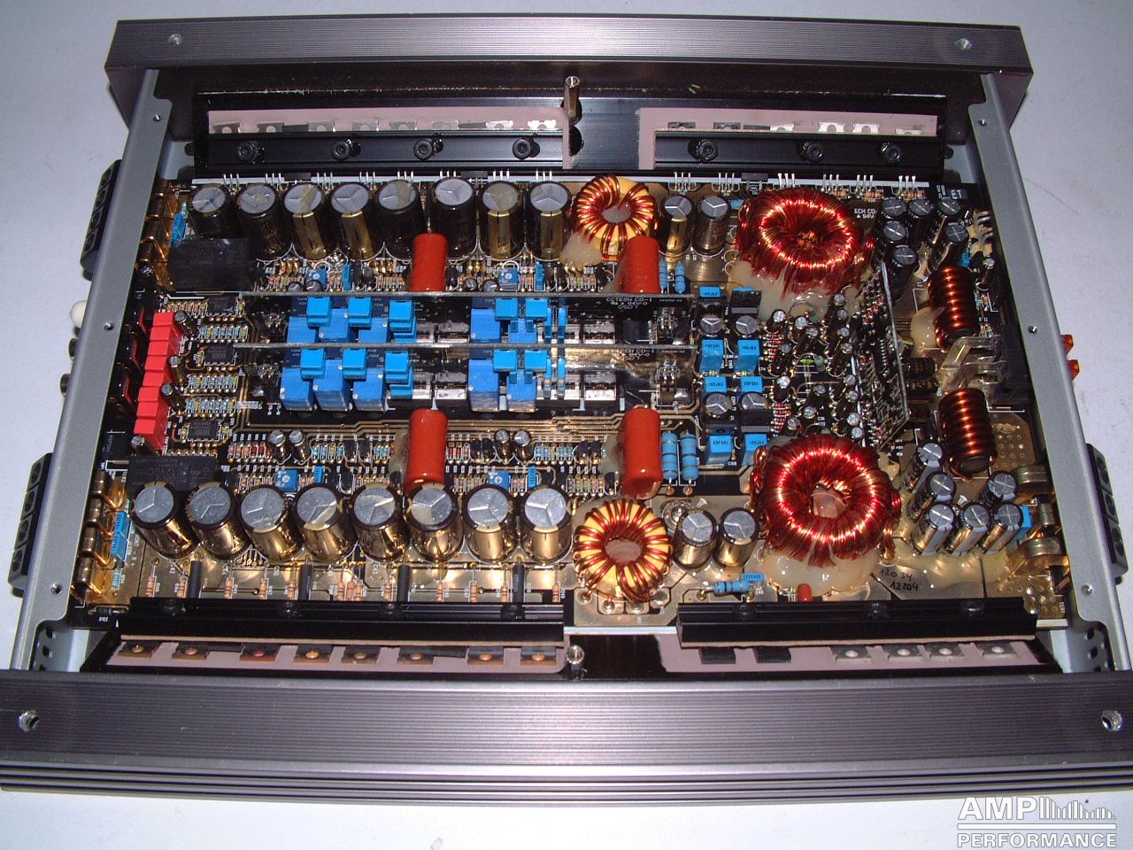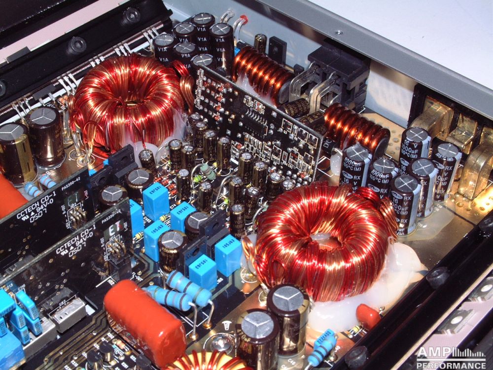 2 × 420 Watt Kanal 1 + 2 sowie 3 + 4 gebrückt an 4 Ohm bei 13,4V Versorgungsspannung