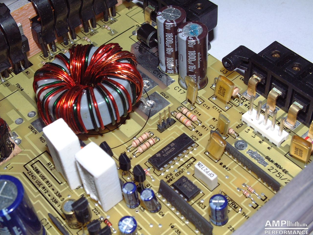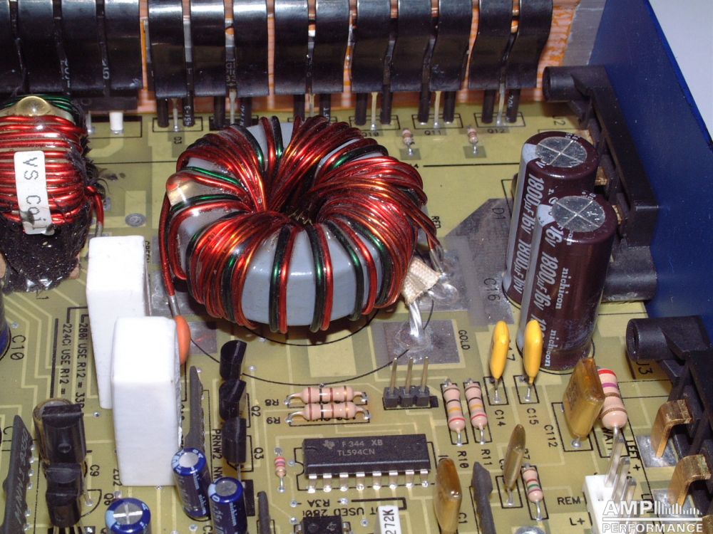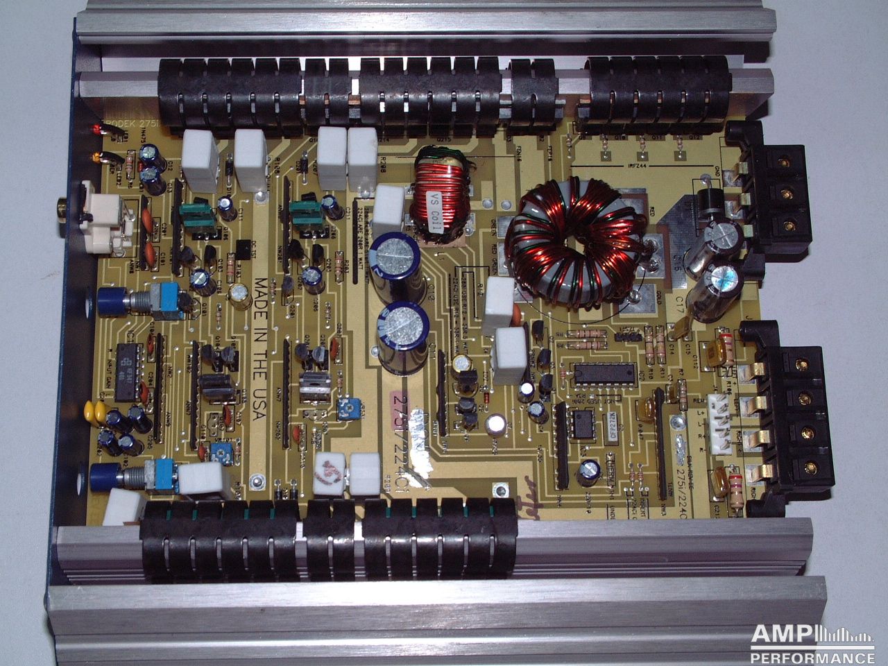 1 × 400 Watt Kanal 1 + 2 gebrückt an 4 Ohm bei 13,4V Versorgungsspannung