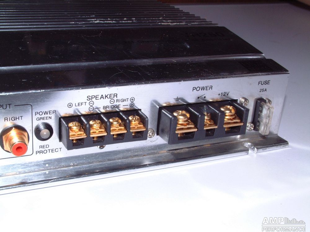 1 × 213 Watt Kanal 1 + 2 gebrückt an 4 Ohm