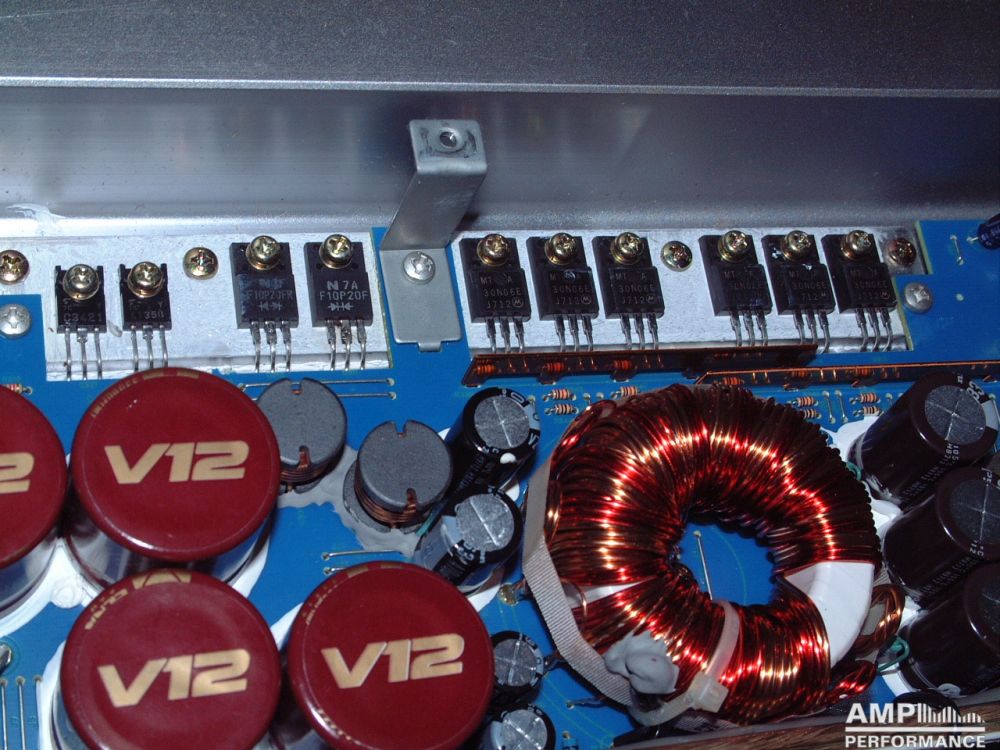 1 × 967 Watt Kanal 1 + 2 gebrückt an 4 Ohm bei 13,3V Versorgungsspannung