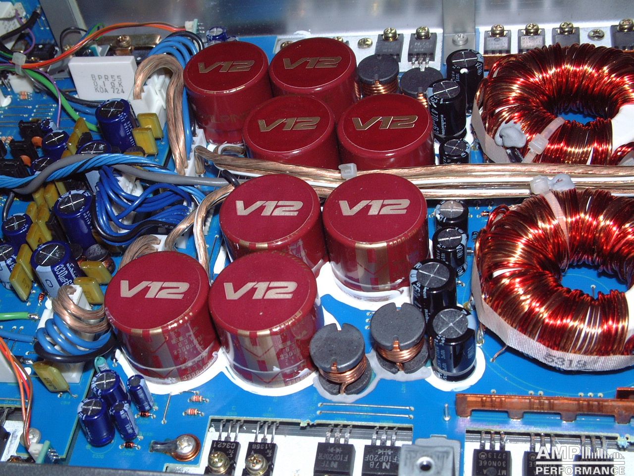 2 × 282 Watt Kanal 1 + 2 an 4 Ohm bei 13,4V Versorgungsspannung