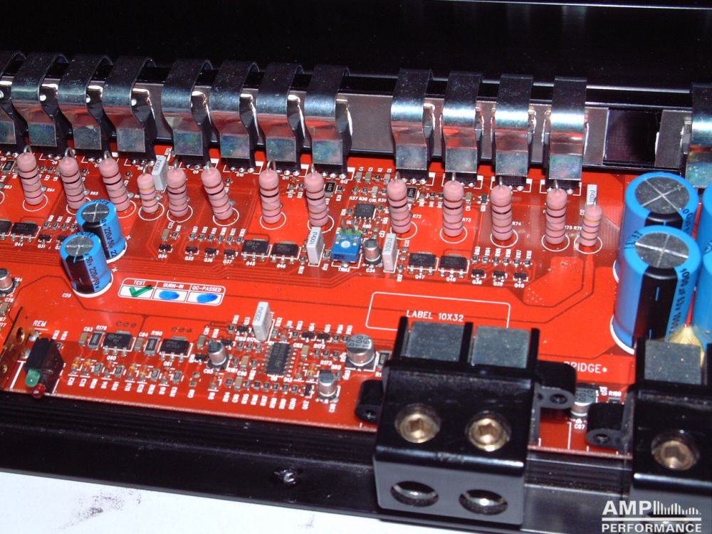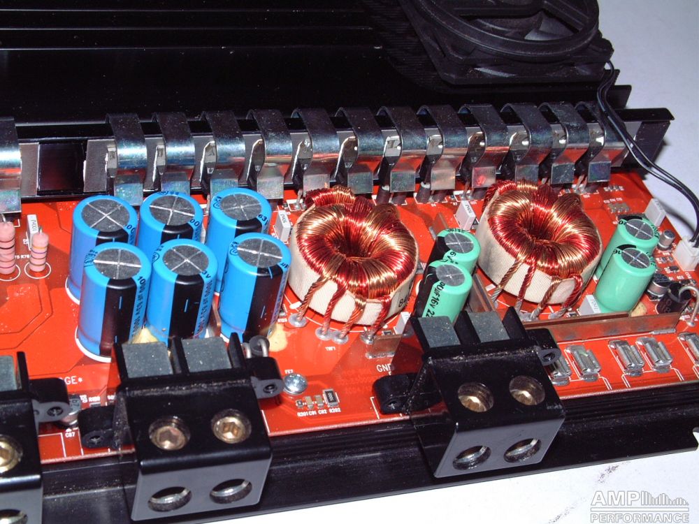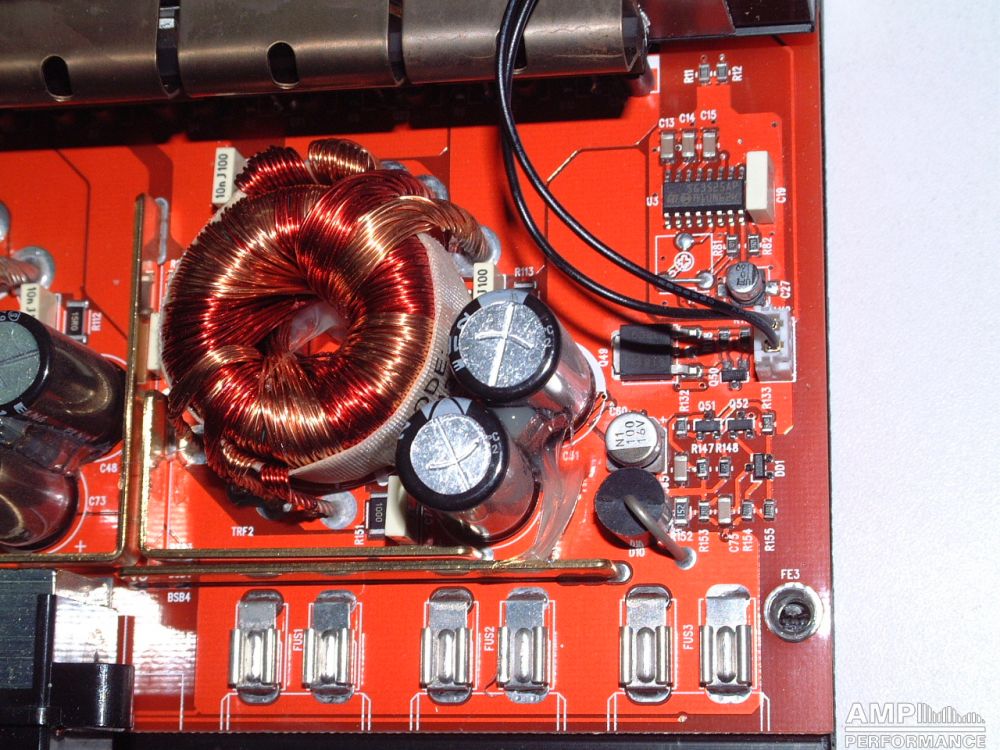 1 × 1040 Watt Kanal 1 + 2 gebrückt an 2 Ohm bei 13,4V Versorgungsspannung
