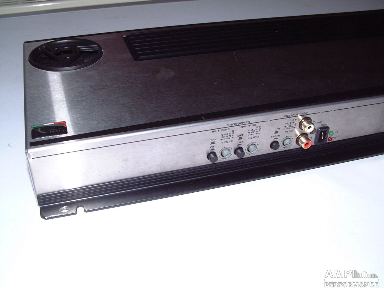 1 × 1049 Watt Kanal 1 + 2 gebrückt an 2 Ohm bei 13,3V Versorgungsspannung