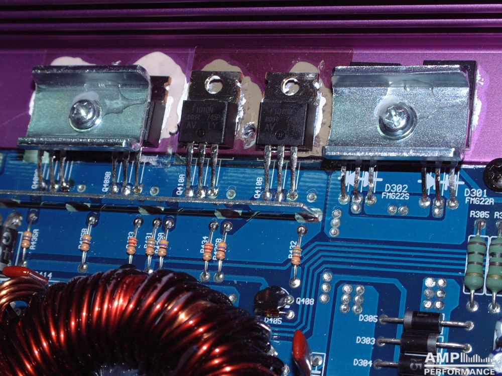 1 × 625 Watt Kanal 1 + 2 gebrückt an 4 Ohm bei 13,4V Versorgungsspannung
