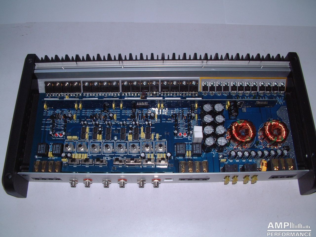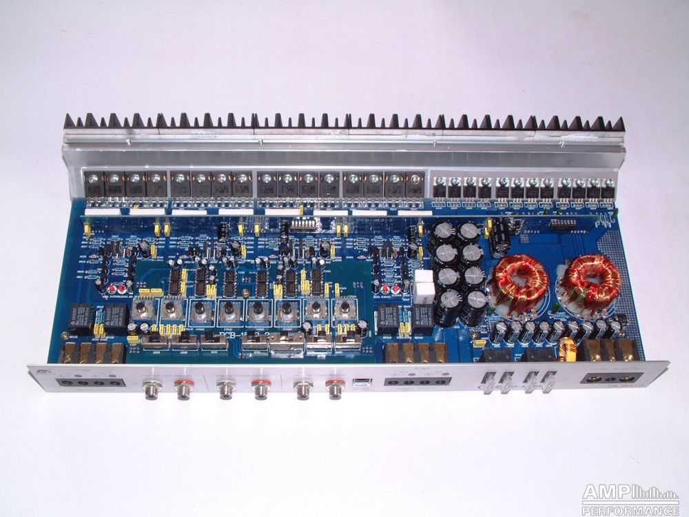 2 × 392 Watt Kanal 1 + 2 sowie 3 + 4 gebrückt an 2 Ohm bei 13,3V Versorgungsspannung