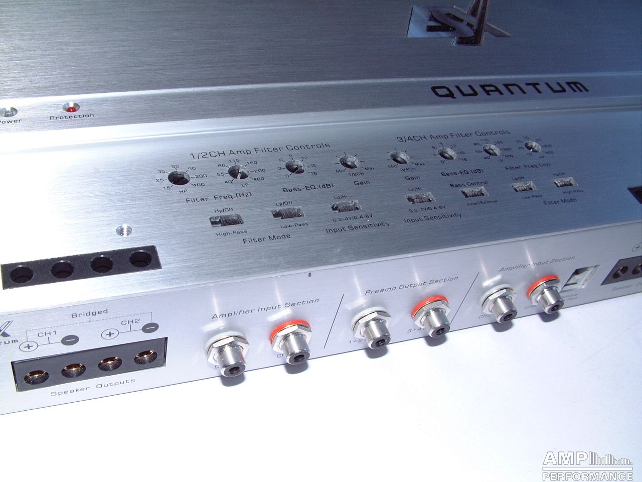 2 × 306 Watt Kanal 1 + 2 sowie 3 + 4 gebrückt an 4 Ohm bei 13,4V Versorgungsspannung