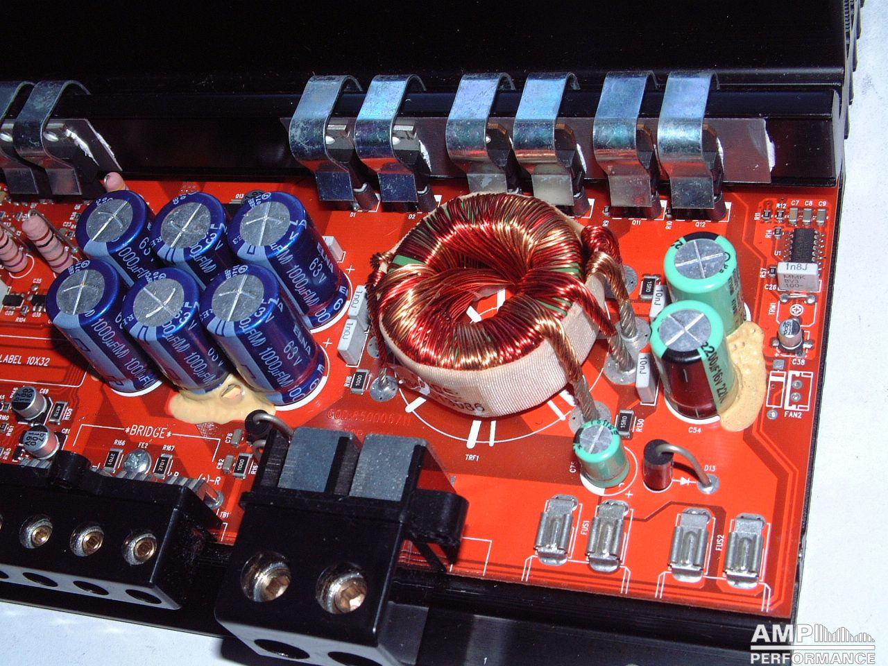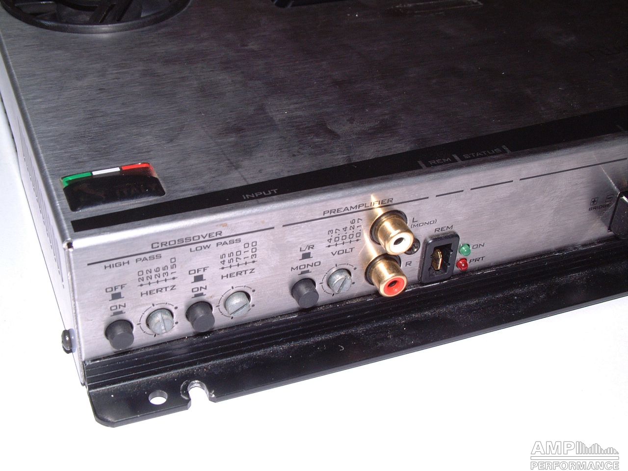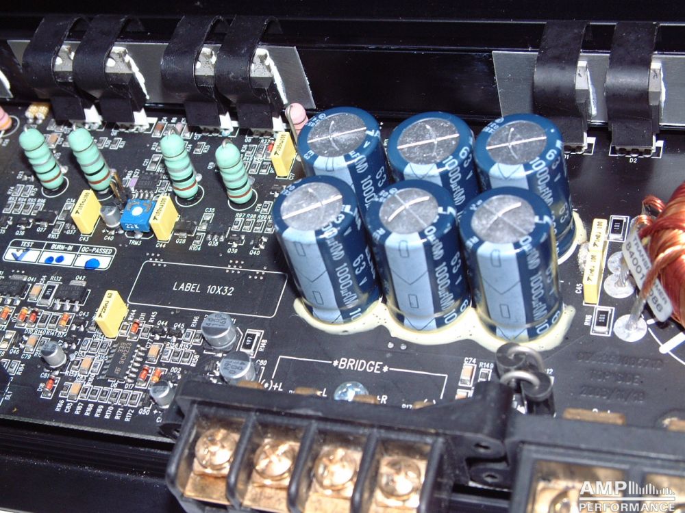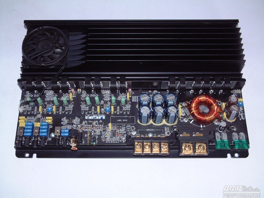 1 × 475 Watt Kanal 1 + 2 gebrückt an 4 Ohm bei 13,4V Versorgungsspannung