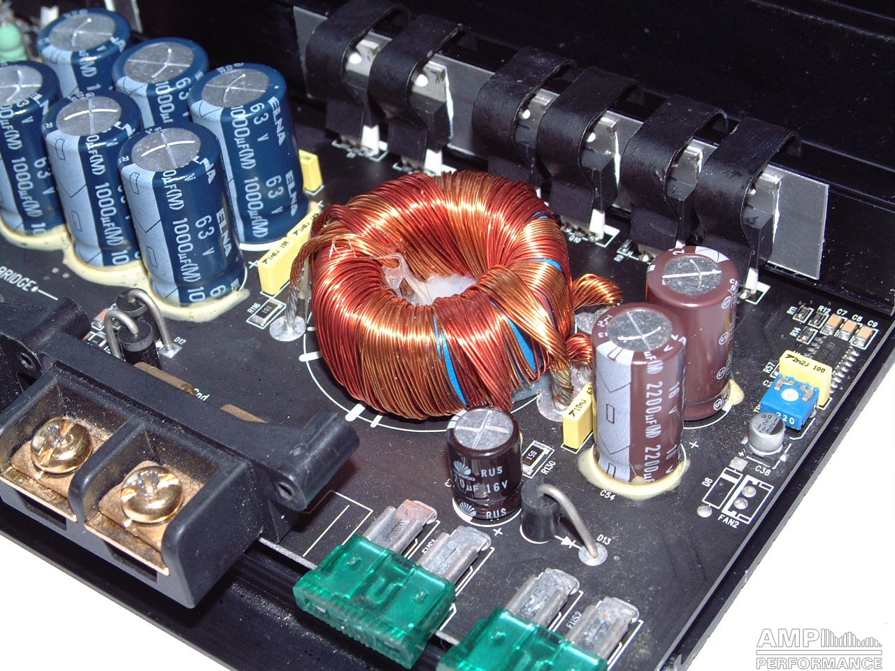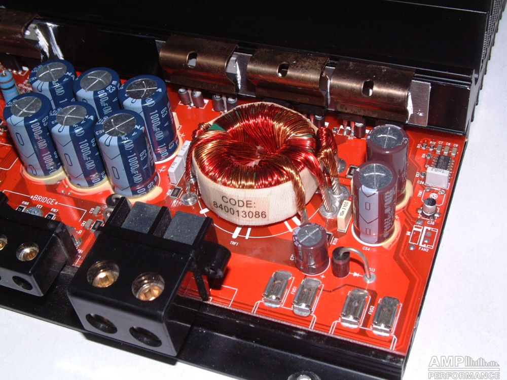 1 × 606 Watt Kanal 1 + 2 gebrückt an 2 Ohm bei 13,4V Versorgungsspannung