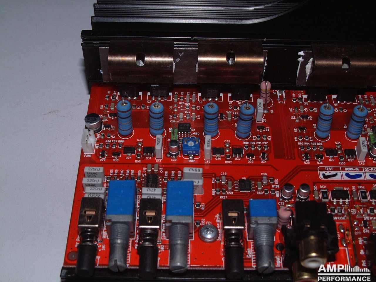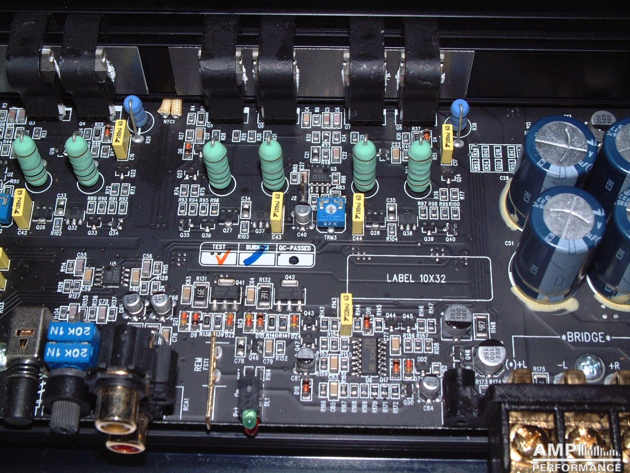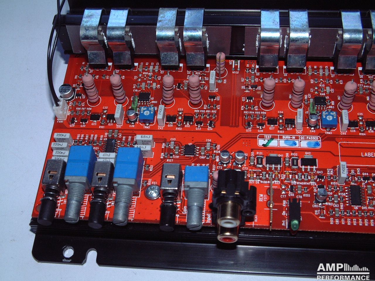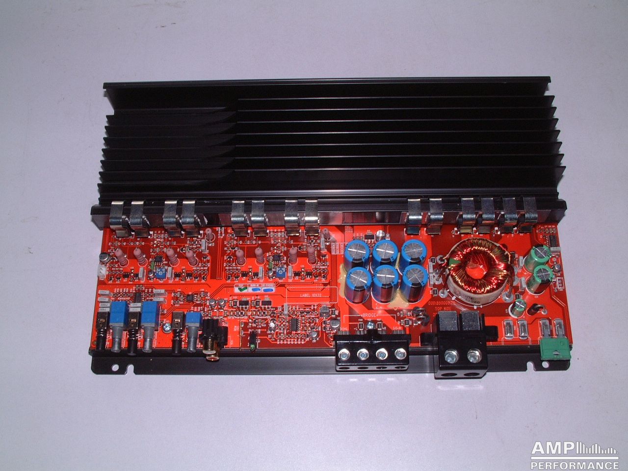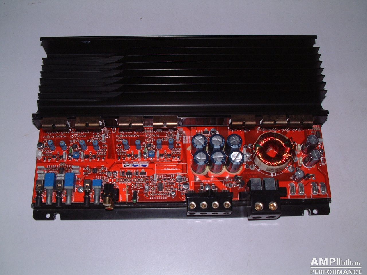 1 × 449 Watt Kanal 1 + 2 gebrückt an 4 Ohm bei 13,4V Versorgungsspannung