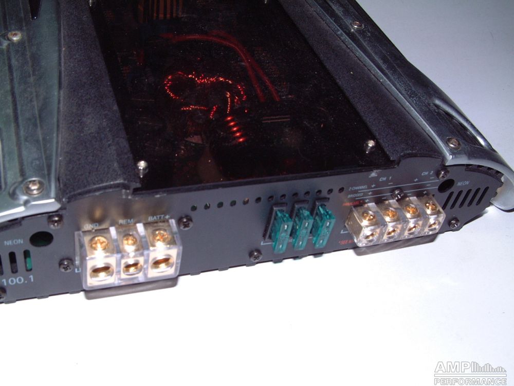 1 × 992 Watt Kanal 1 + 2 gebrückt an 4 Ohm bei 13,4V Versorgungsspannung
