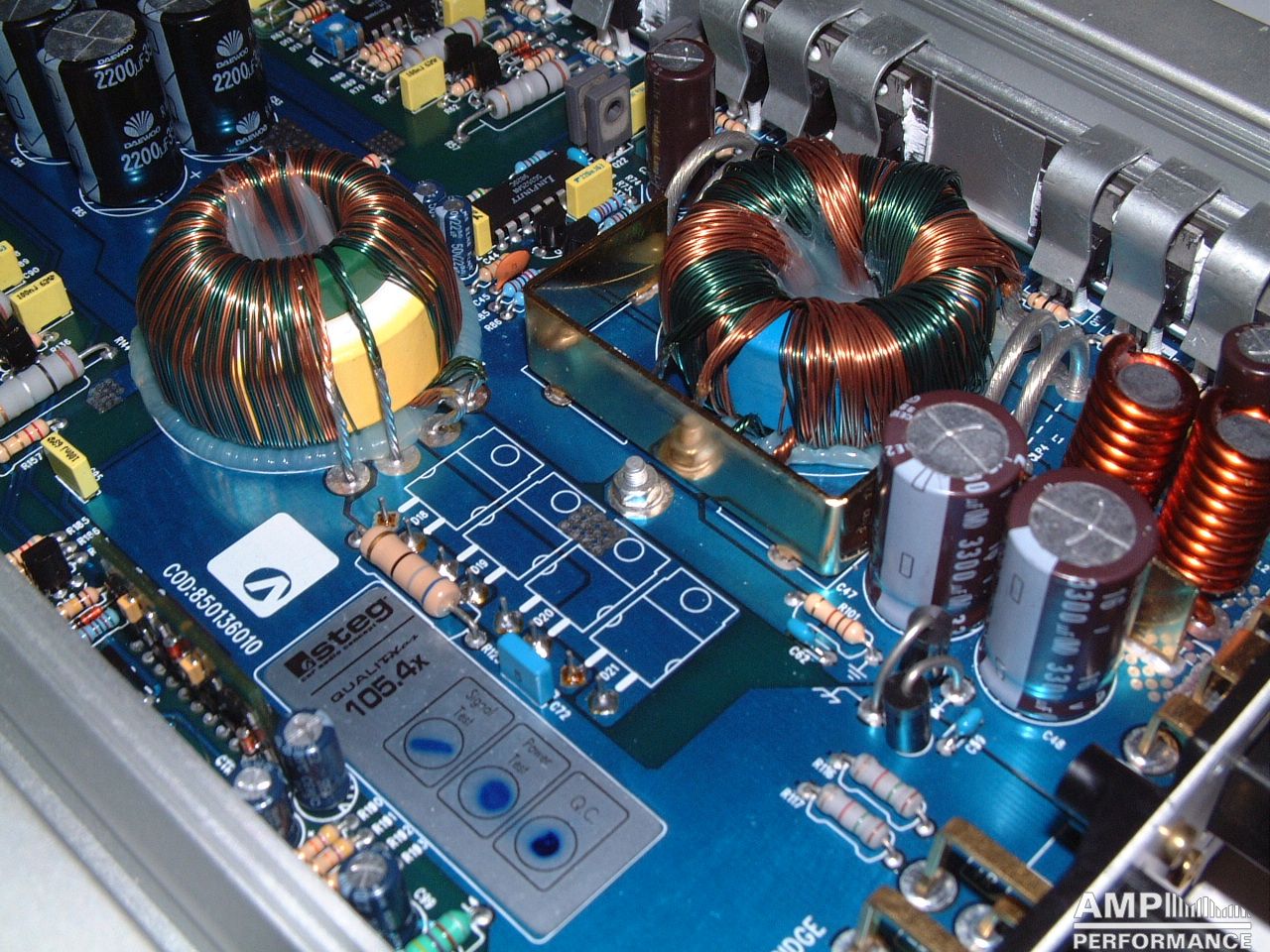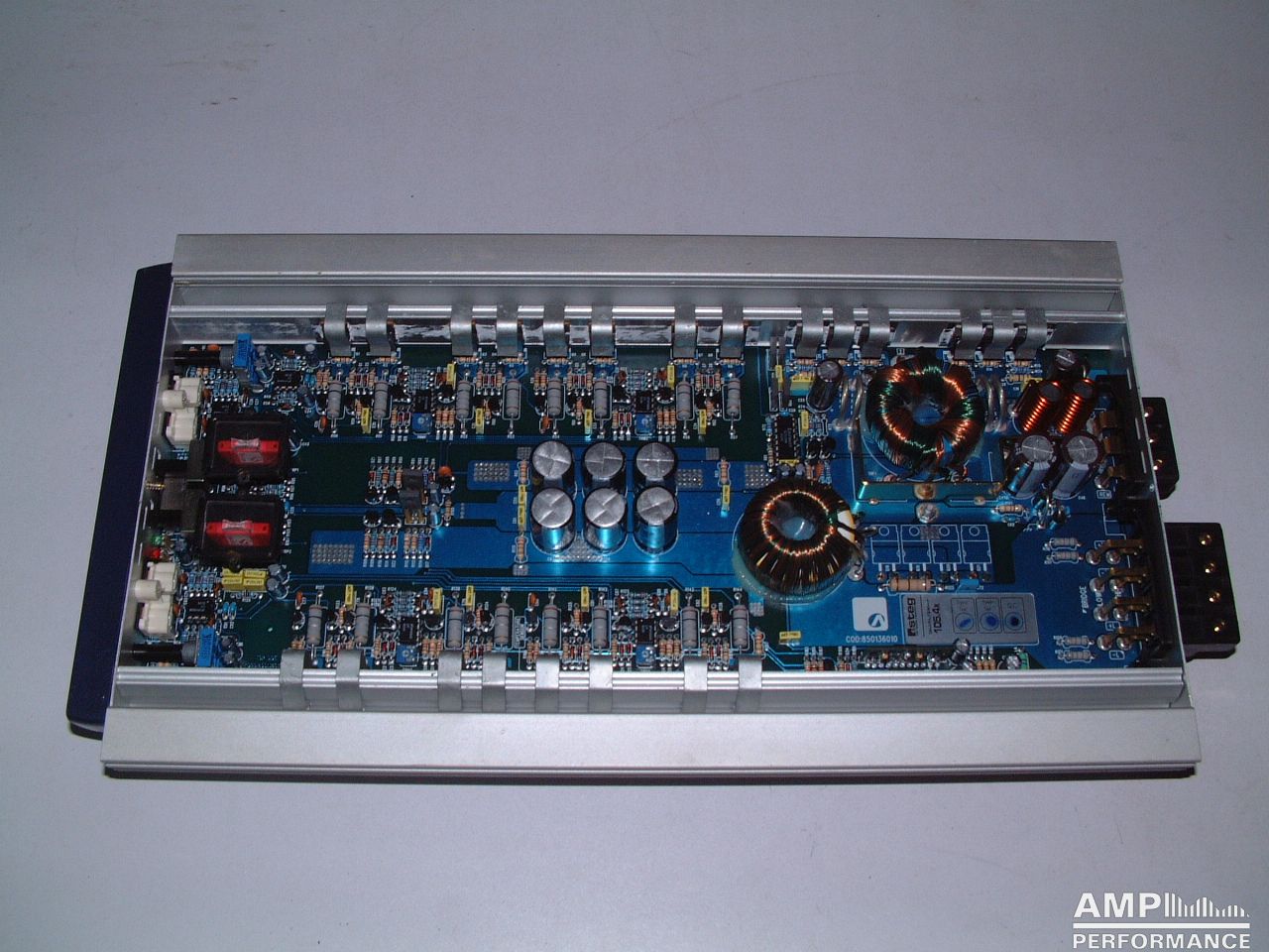 2 × 441 Watt Kanal 1 + 2 sowie 3 + 4 gebrückt an 4 Ohm bei 13,4V Versorgungsspannung
