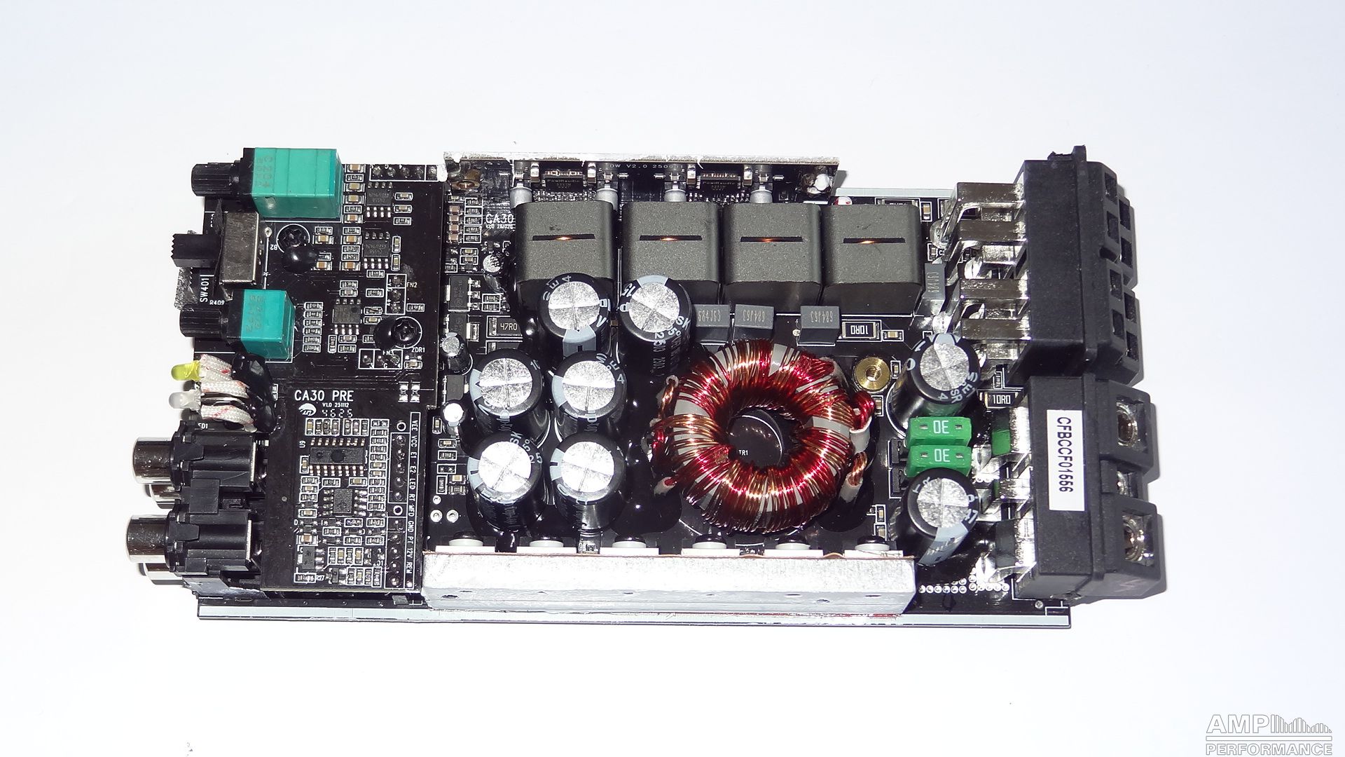 2 × 272 Watt Kanal 1 + 2 sowie 3 + 4 gebrückt an 4 Ohm bei 13,6V Versorgungsspannung