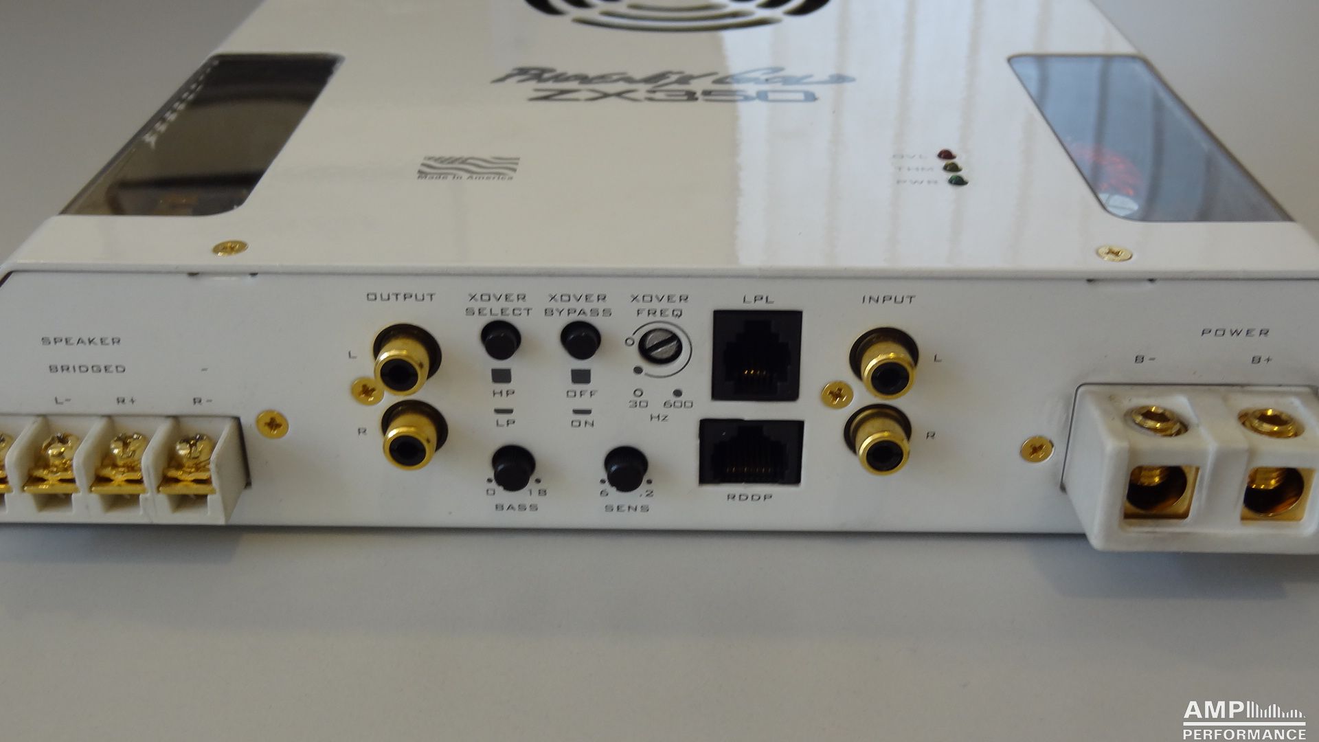 1 × 350 Watt Kanal 1 + 2 gebrückt an 4 Ohm
