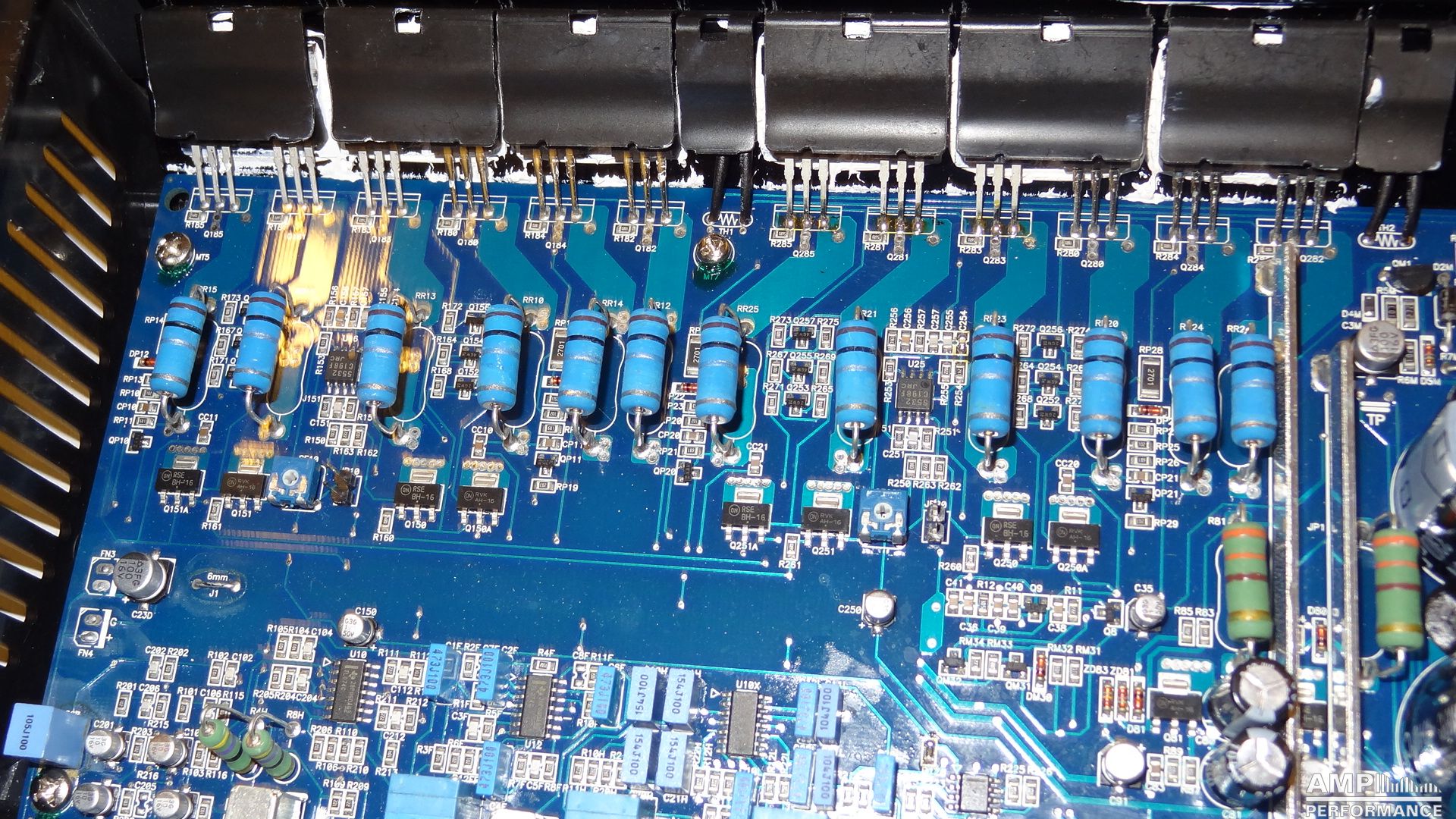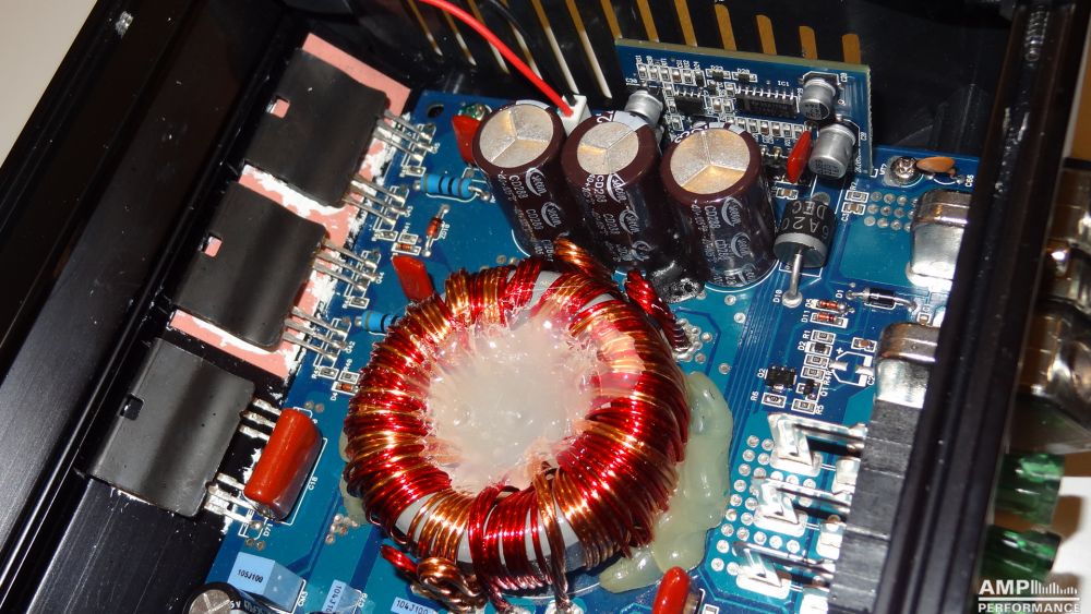 1 × 606 Watt Kanal 1 + 2 gebrückt an 2 Ohm bei 13,4V Versorgungsspannung