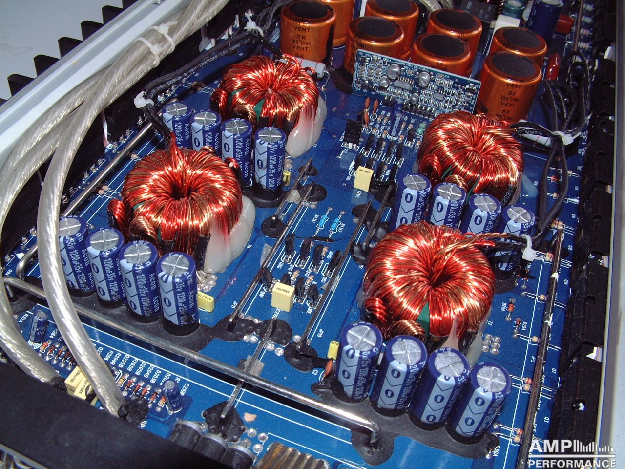 2 × 462 watts, channel 1 + 2 at 4 Ohm with 13,4V supply voltage