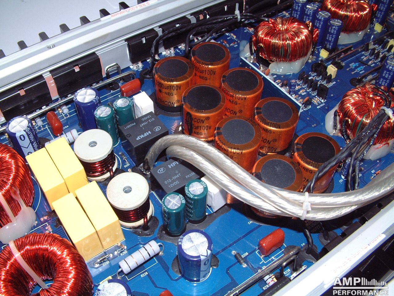 1 × 2738 watts, channel 1 + 2 bridged at 2 Ohm with 13,3V supply voltage