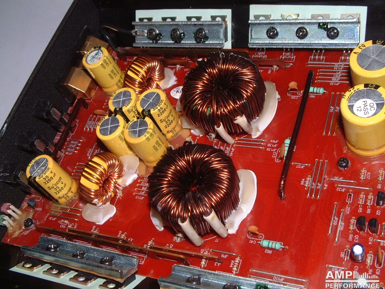 1 × 841 watts, channel 1 + 2 bridged at 4 Ohm with 13,4V supply voltage