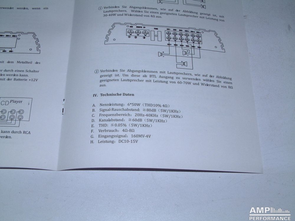 6 × 34 watts, channel 1 up to 4 at 4 Ohm