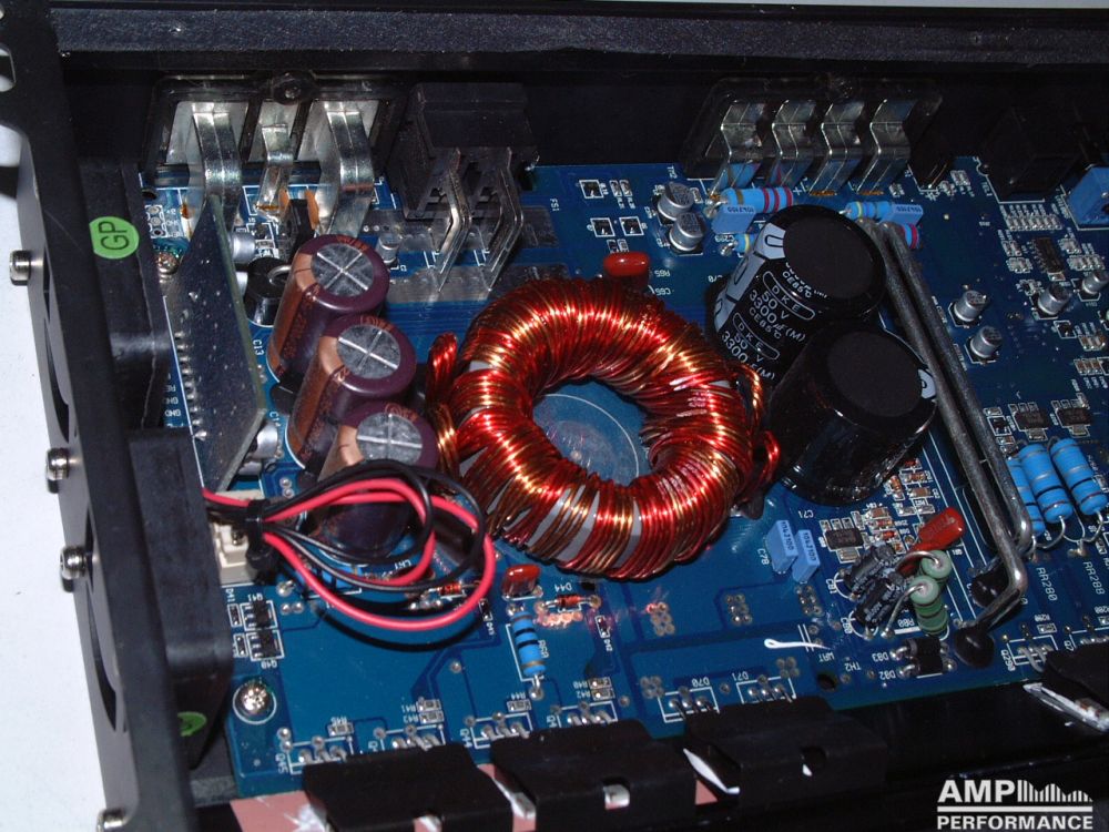 1 × 599 watts, channel 1 + 2 bridged at 2 Ohm with 13,4V supply voltage
