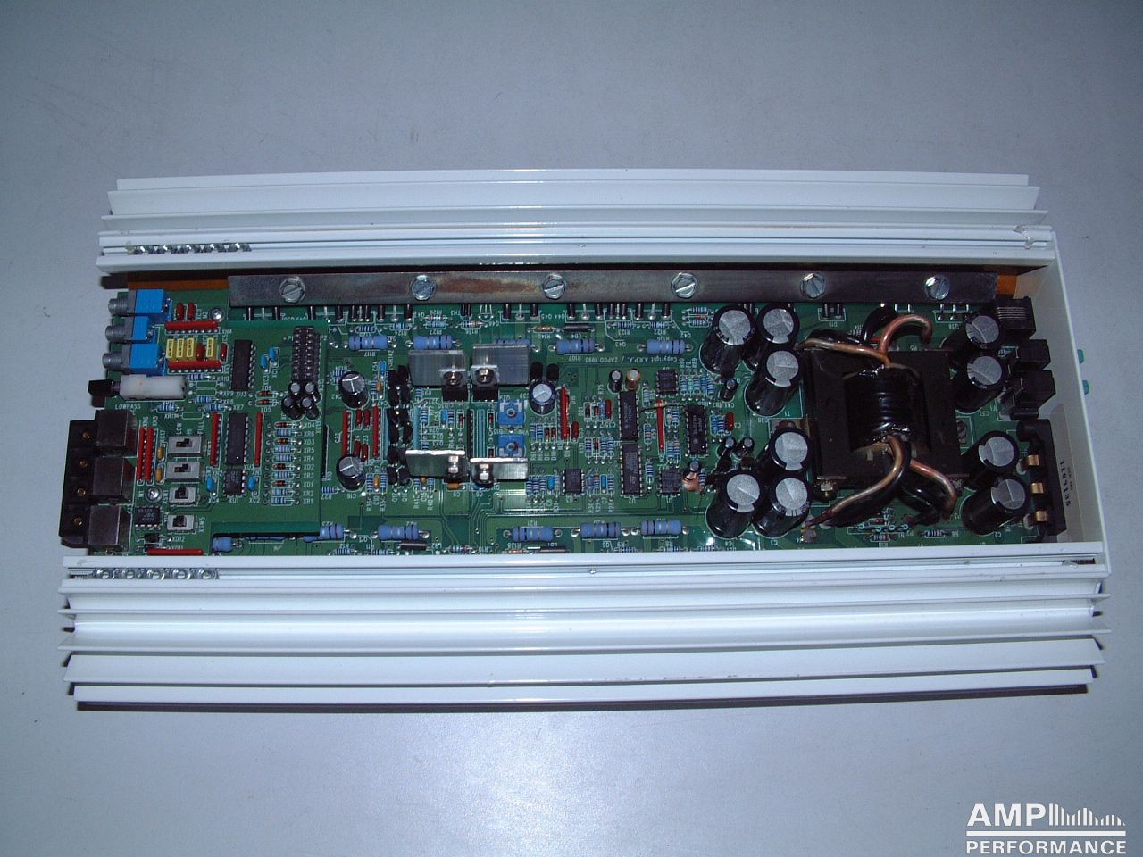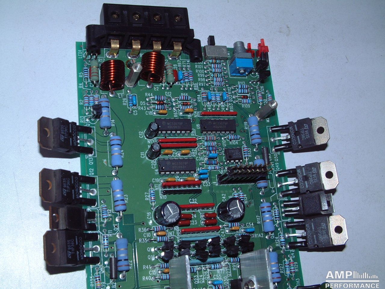 1 × 468 watts, channel 1 + 2 bridged at 2 Ohm with 13,4V supply voltage