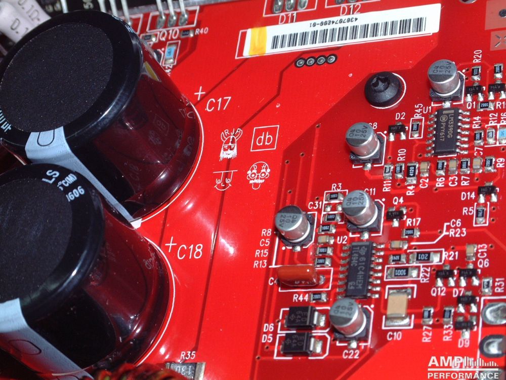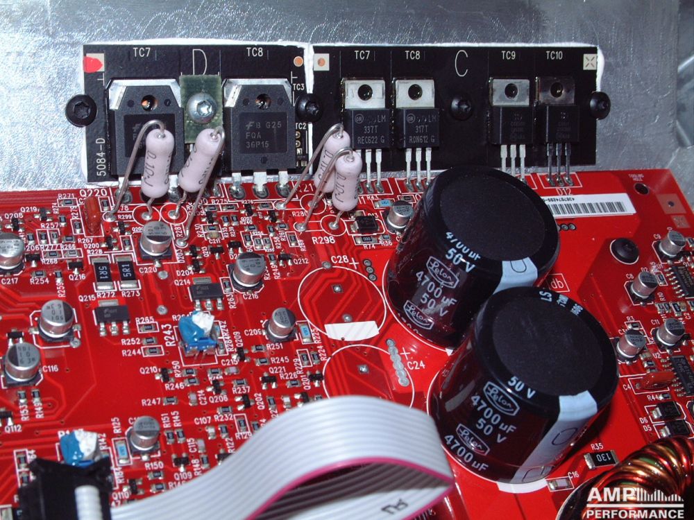 1 × 557 watts, channel 1 + 2 bridged at 4 Ohm with 13,4V supply voltage