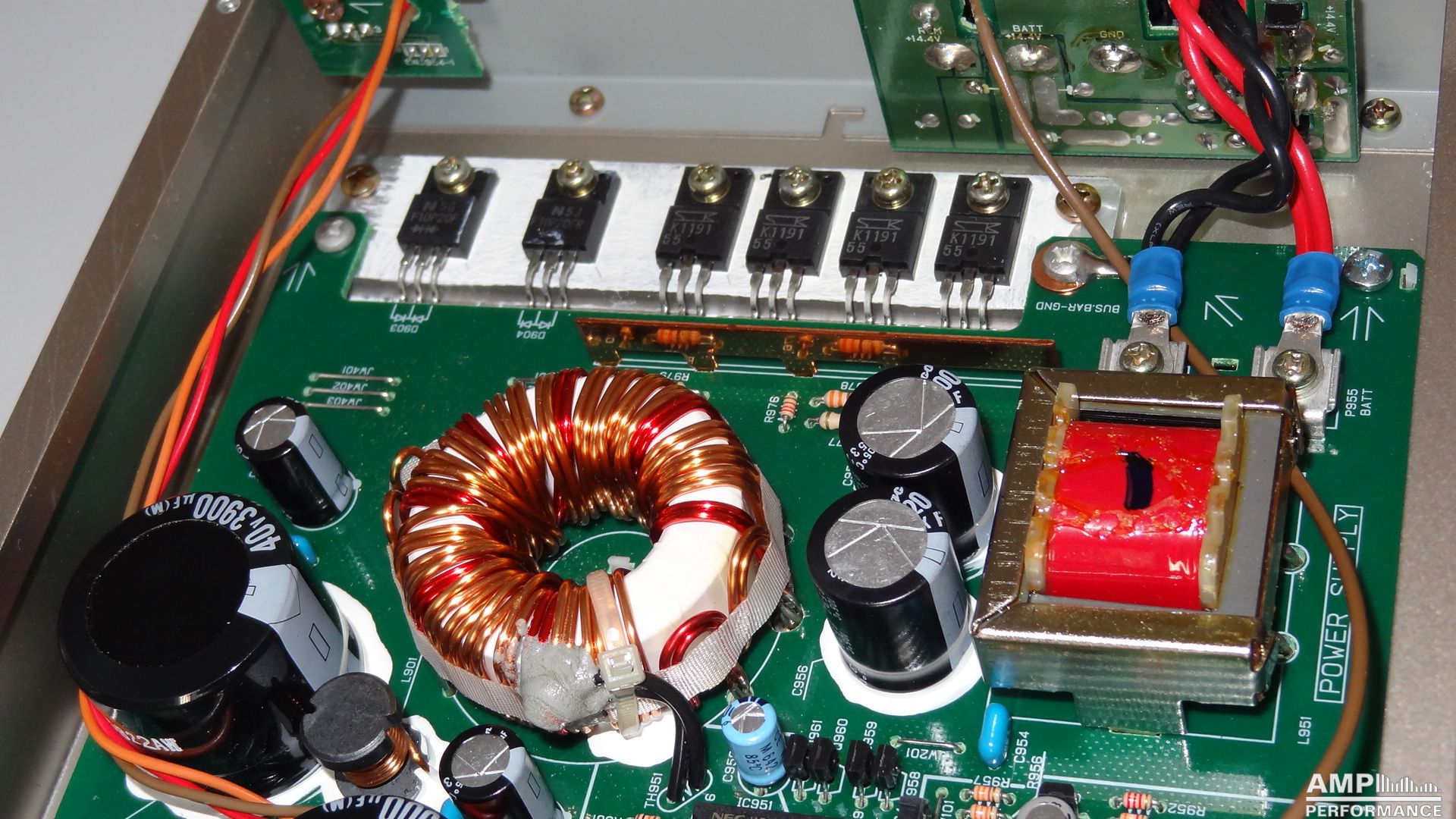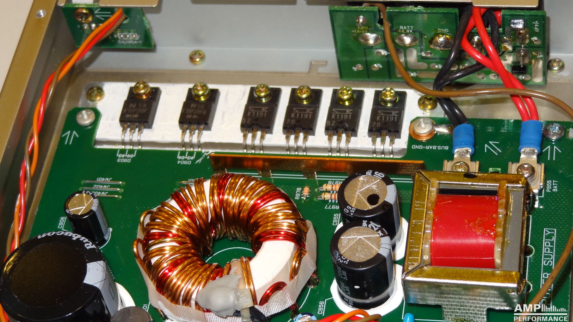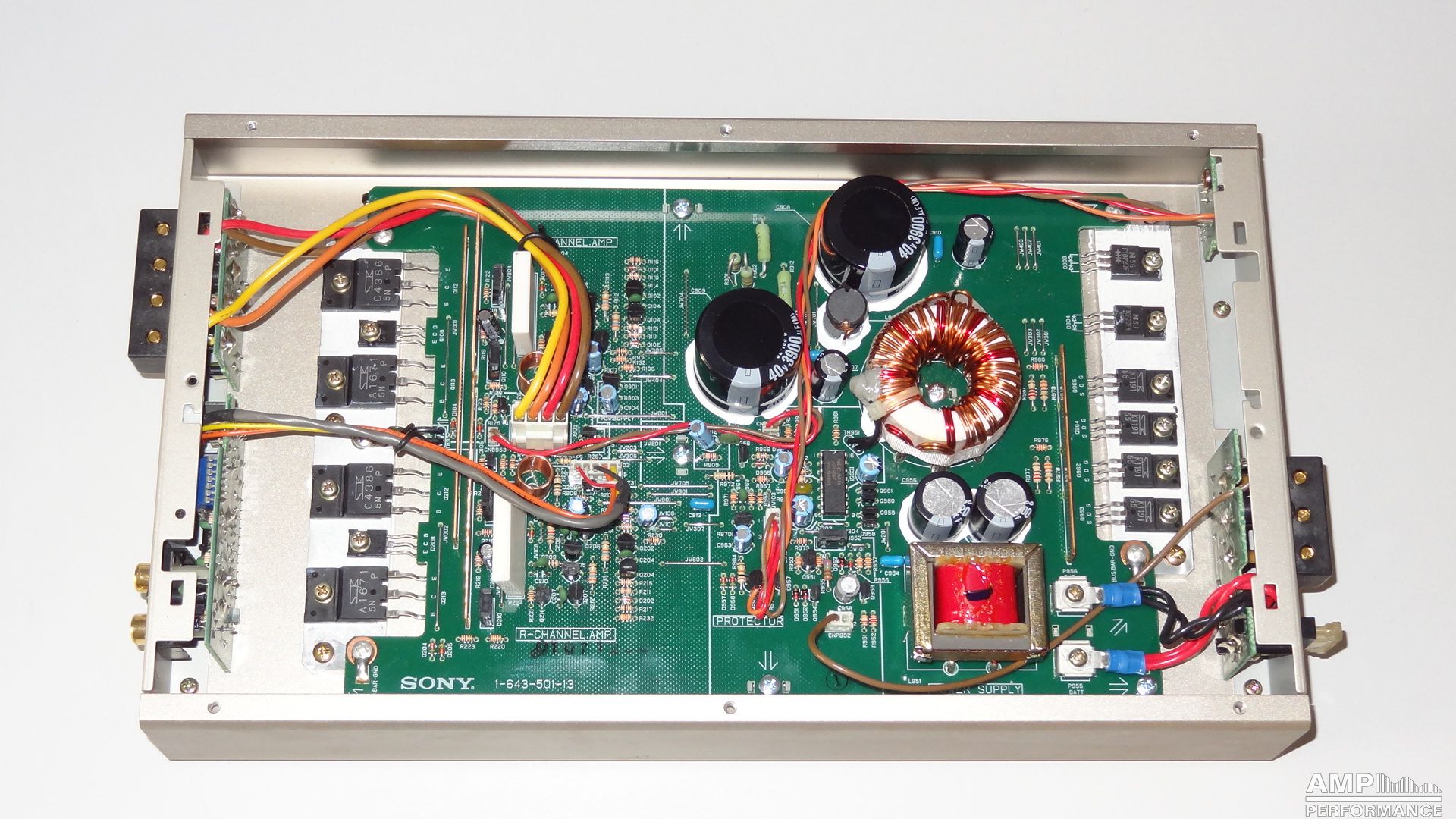 2 × 78 watts, channel 1 + 2 at 4 Ohm 13,7V supply voltage