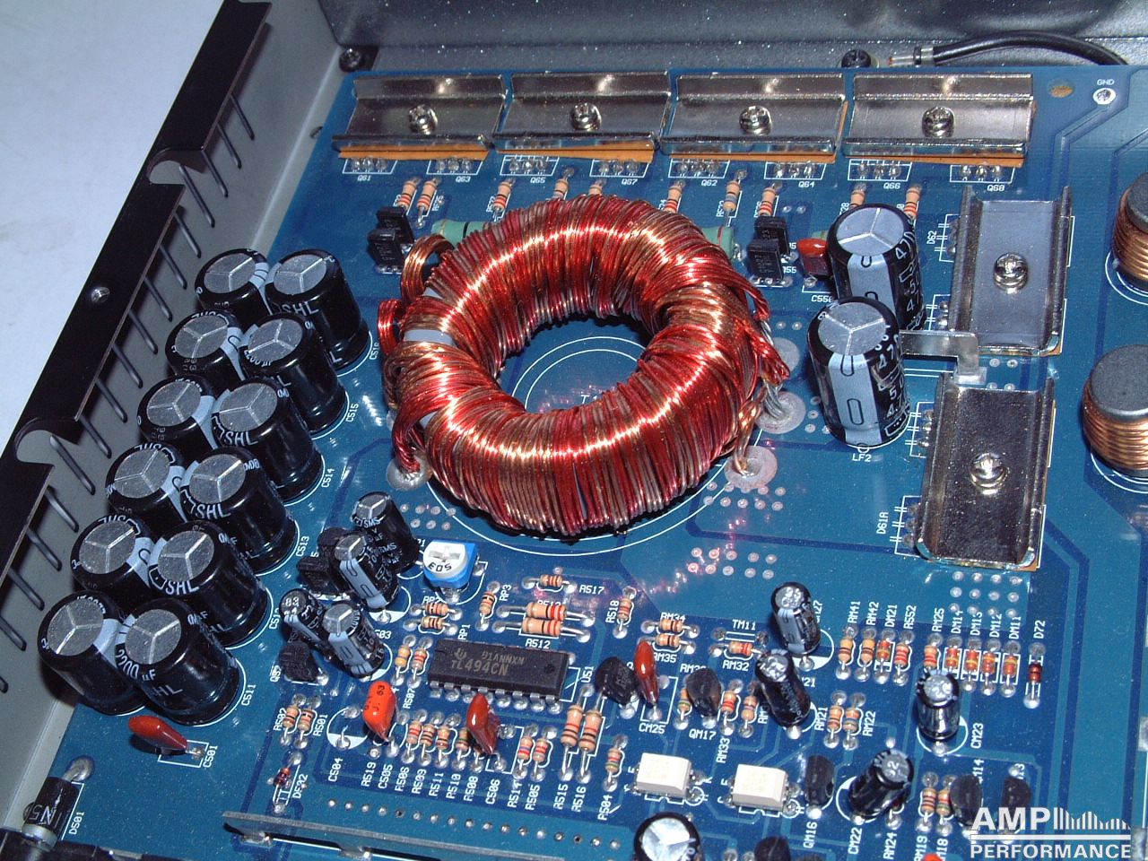 1 × 613 watts, channel 1 + 2 bridged at 2 Ohm with 13,4V supply voltage