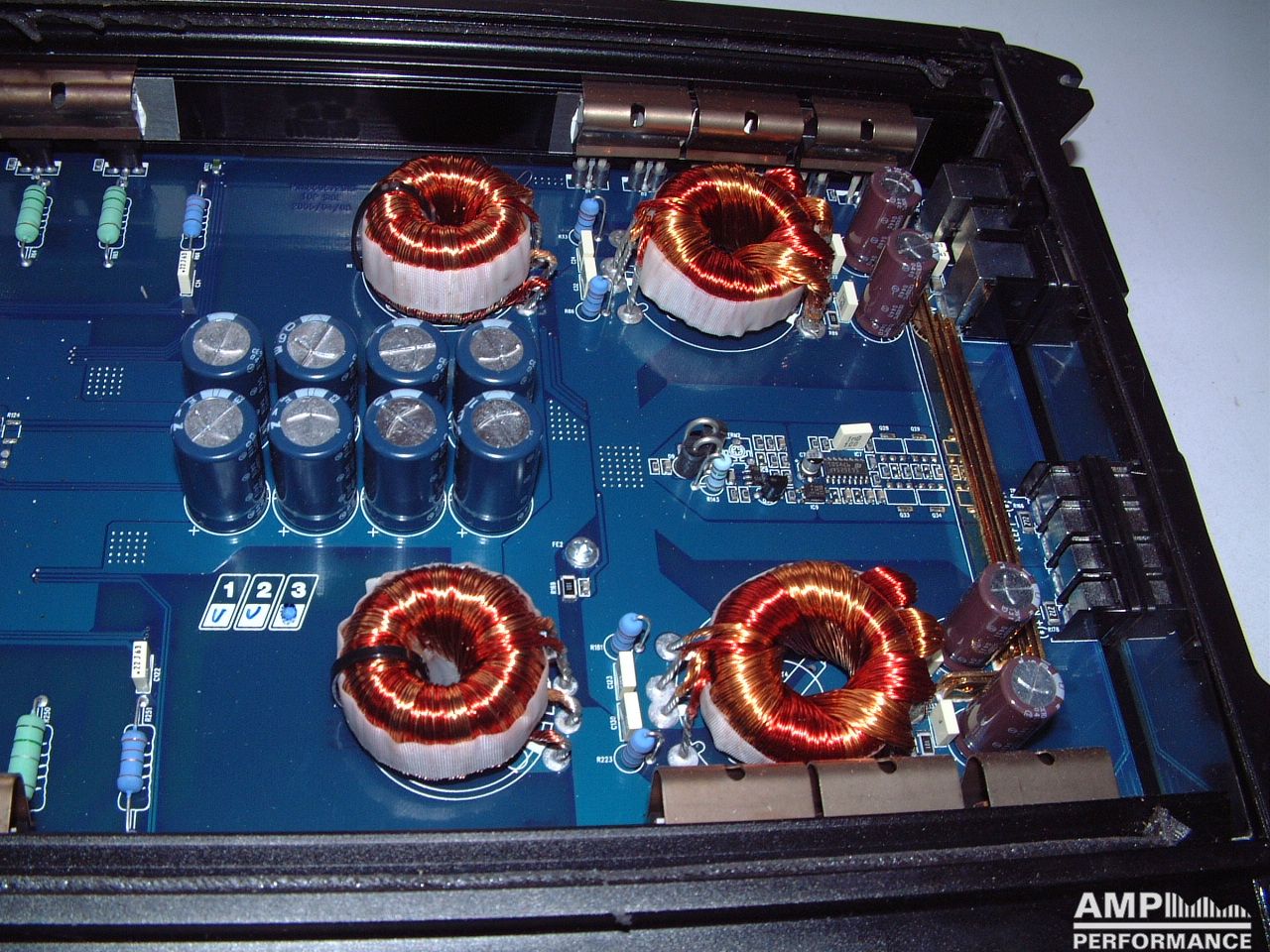 1 × 1170 watts, channel 1 + 2 bridged at 4 Ohm with 13,3V supply voltage