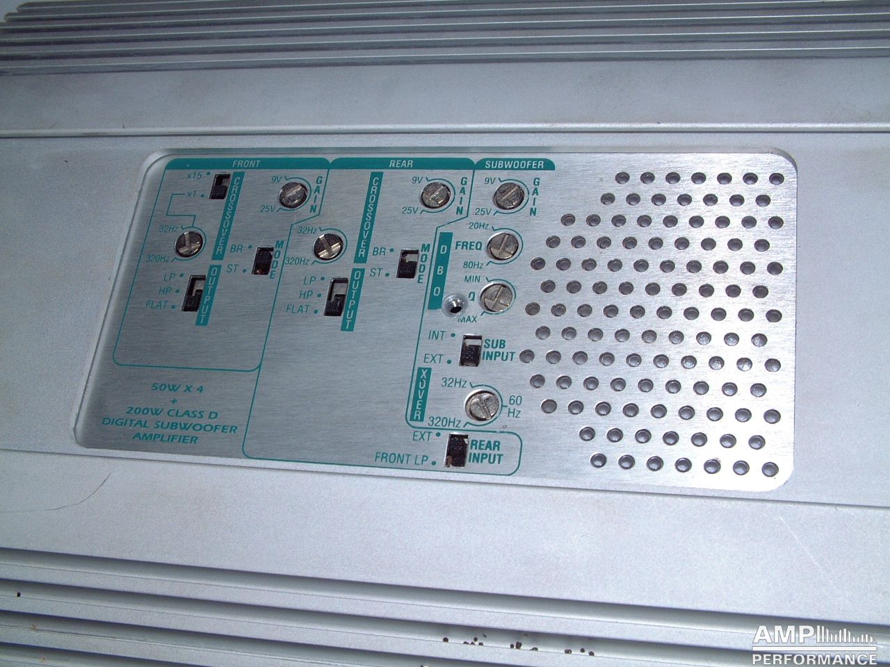 4 × 53 watts, channel 1 up to 4 at 4 Ohm +