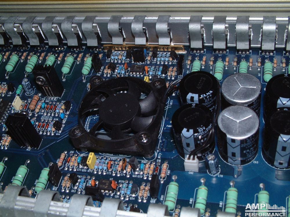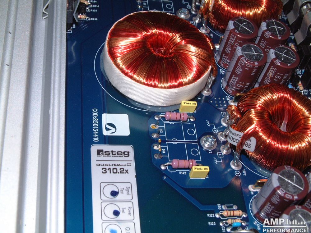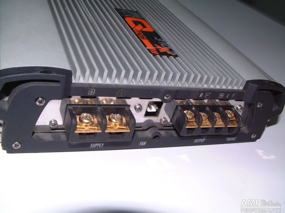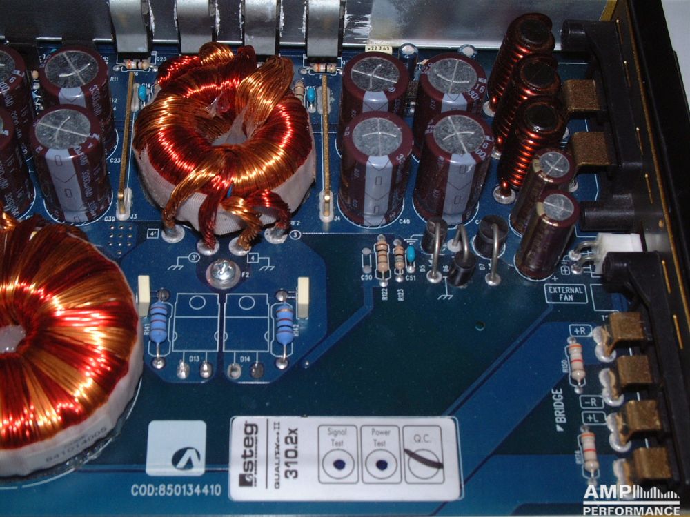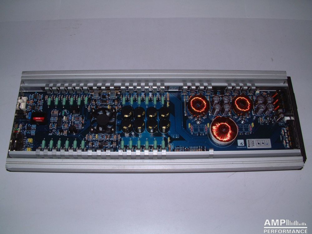 1 × 1296 watts, channel 1 + 2 bridged at 4 Ohm with 13,3V supply voltage
